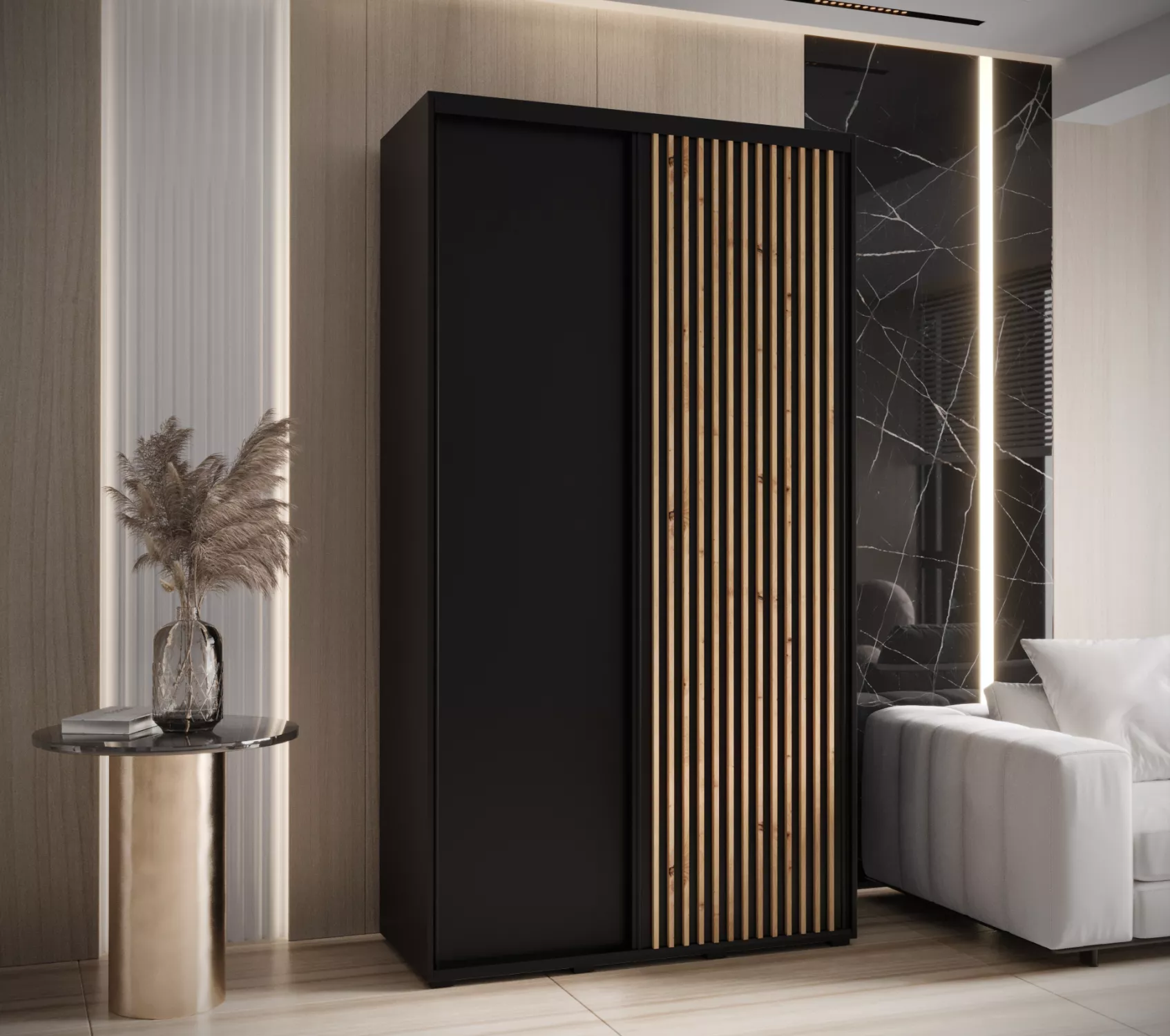 Šatní skříň FIDELIA 1 - 140/60 cm, černá / černá / dub artisan