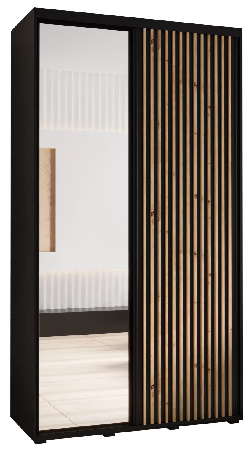Šatní skříň BAYLIN 2 - 130/45 cm, černá / černá / dub artisan