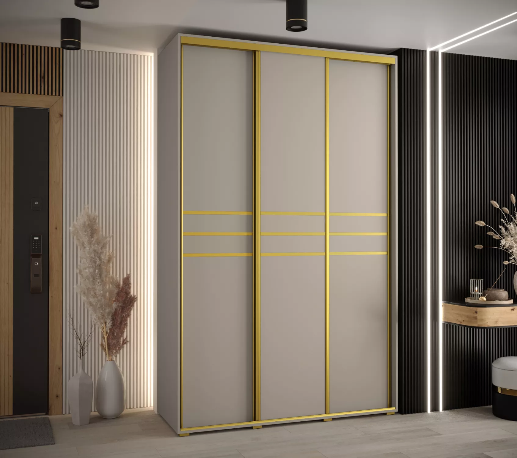 Šatní skříň INDIRA 10 - 150/45 cm, kašmír / zlatá