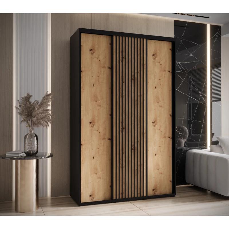 Šatní skříň BAYLIN 1 - 150/60 cm, černá / dub artisan / černá