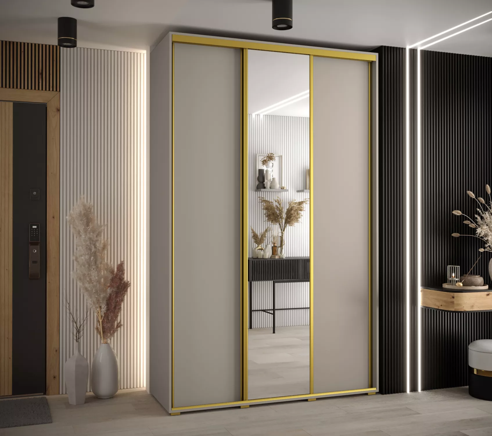 Šatní skříň INDIRA 3 - 150/45 cm, kašmír / zlatá