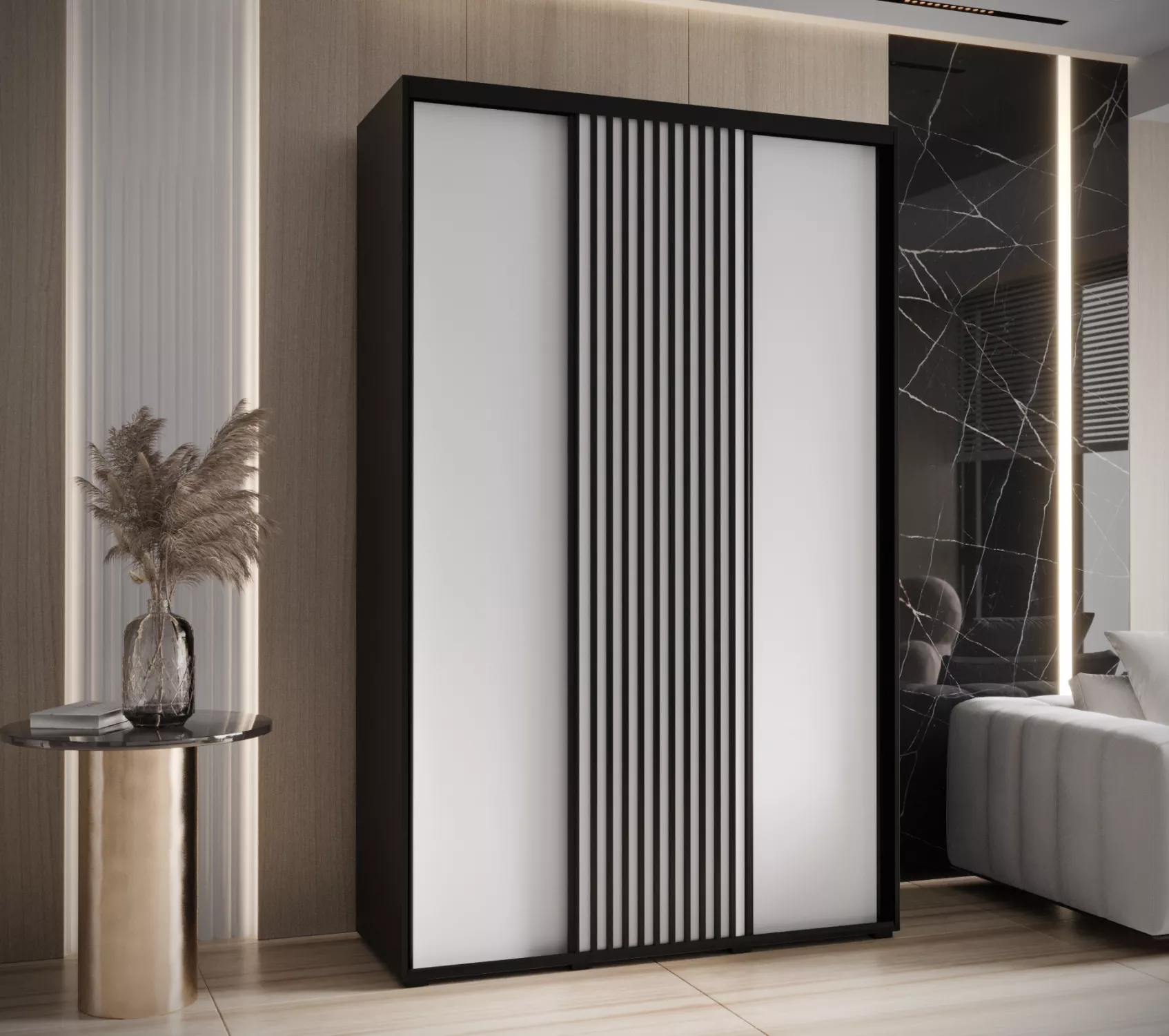 Šatní skříň FIDELIA 1 - 150/60 cm, černá / bílá / černá