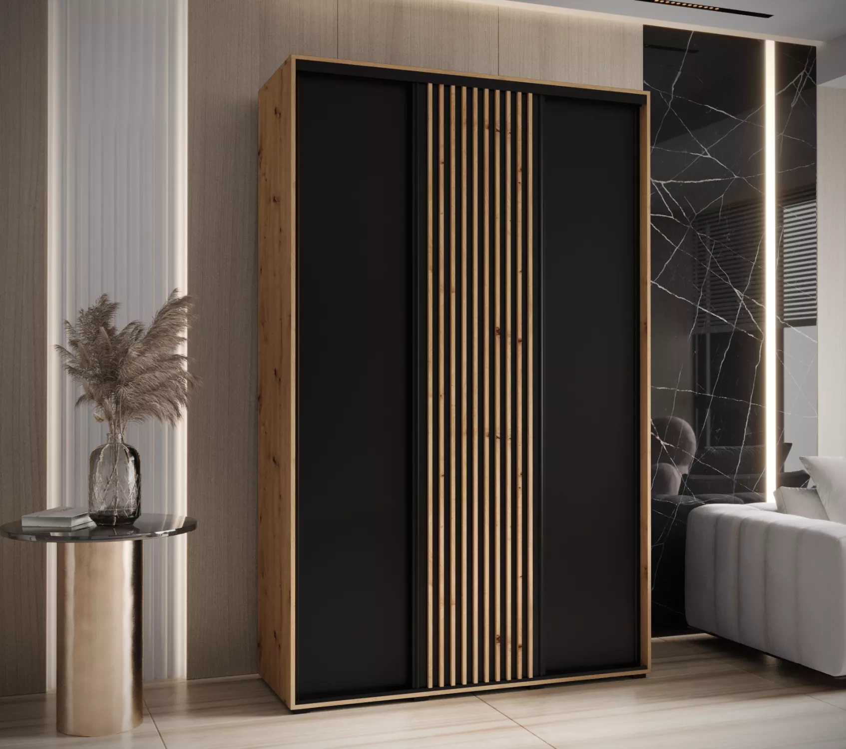 Šatní skříň FIDELIA 1 - 150/60 cm, dub artisan / černá / dub artisan