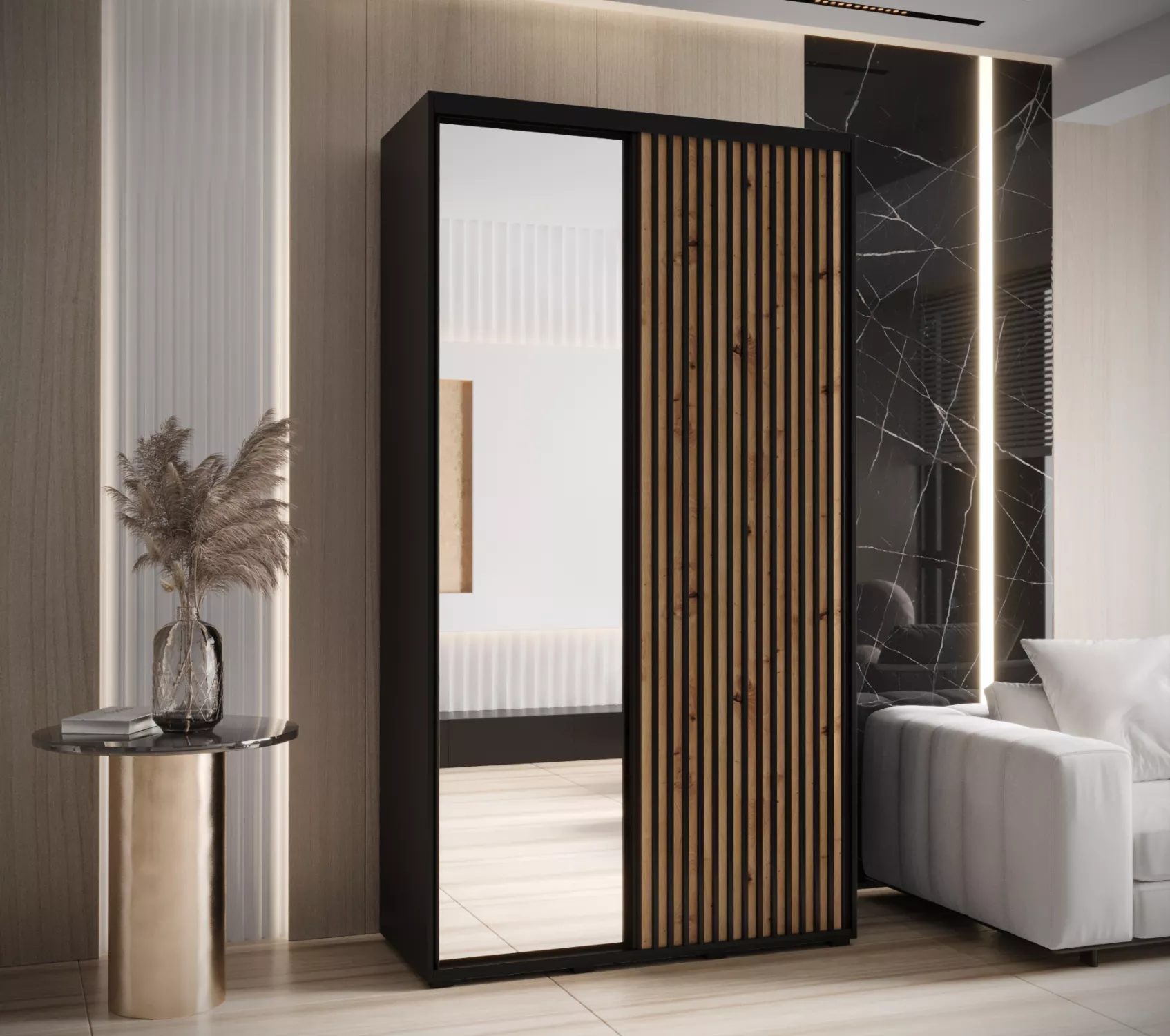 Šatní skříň BAYLIN 2 - 140/60 cm, černá / dub artisan / černá