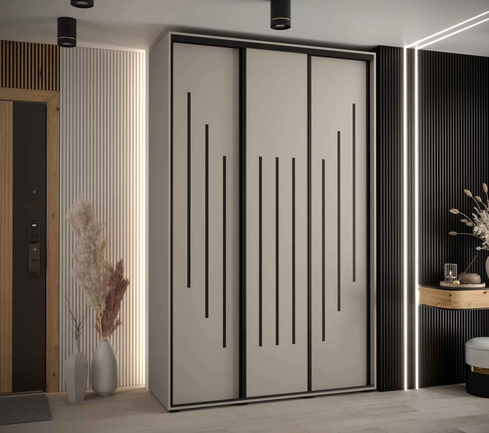 Šatní skříň INDIRA 8 - 150/45 cm, kašmír / černá