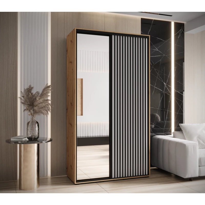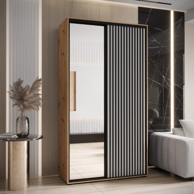 Šatní skříň FIDELIA 2 - 140/45 cm, dub artisan / bílá / černá