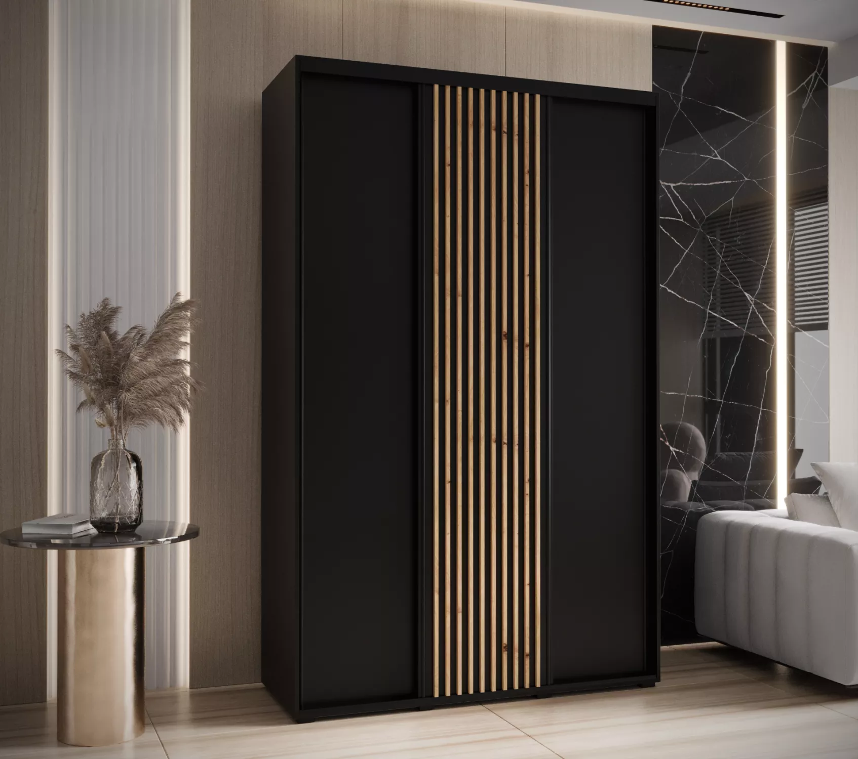 Šatní skříň BAYLIN 1 - 160/60 cm, černá / černá / dub artisan