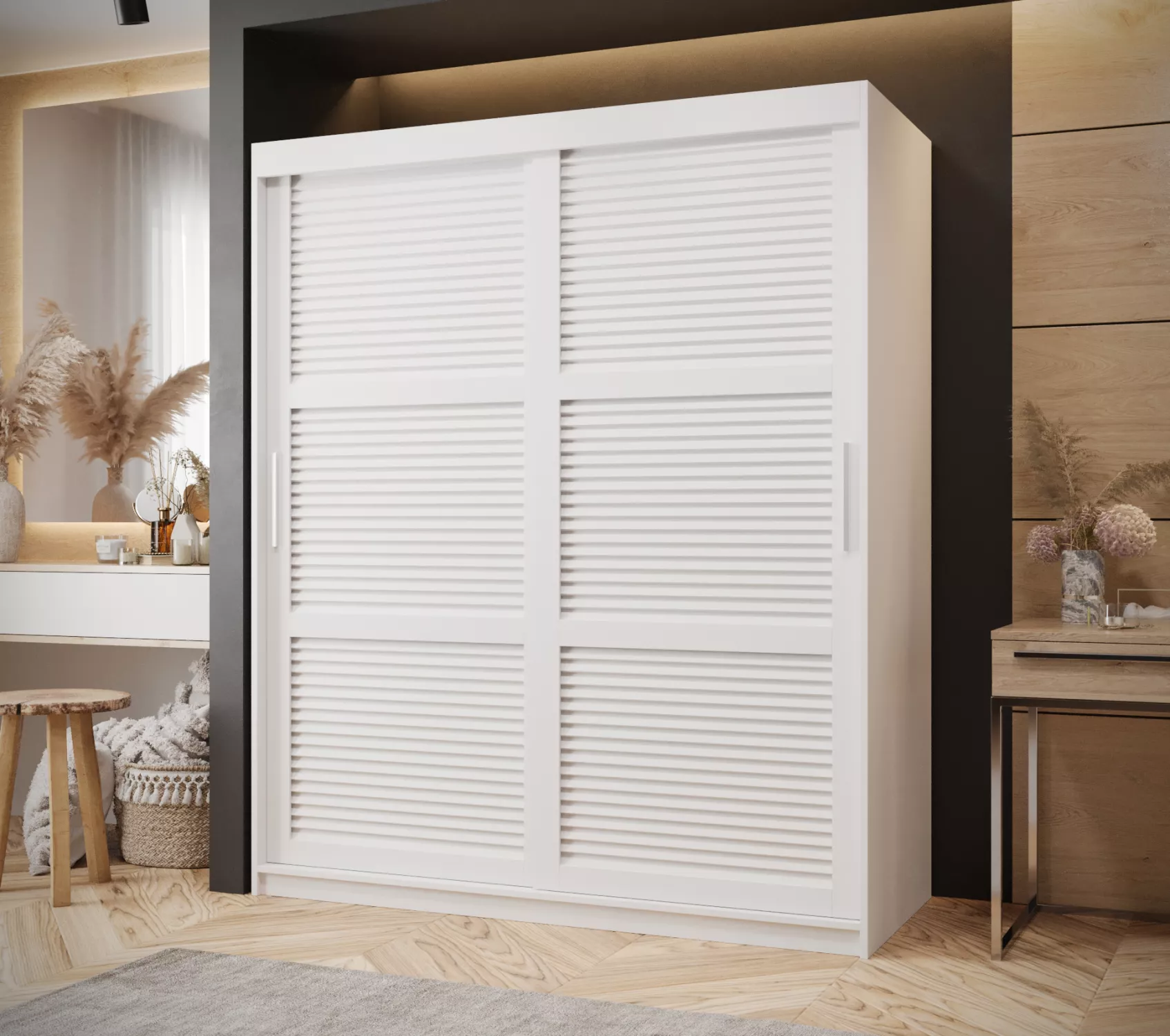 Šatní skříň MATILDA 1 zaujme především stylovými dvířky. Vnitřek skříně je vybaven policovým systémem a 2 šatními tyčemi.