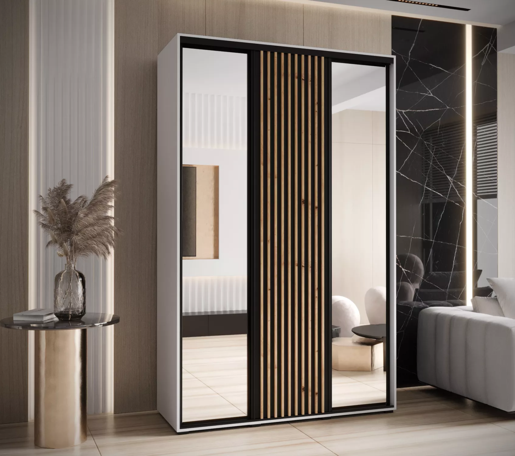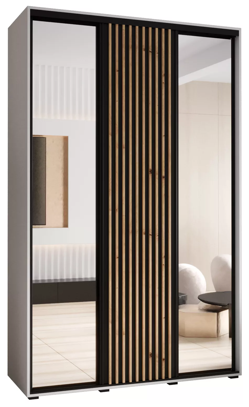Šatní skříň BAYLIN 2 - 150/60 cm, bílá / černá / dub artisan