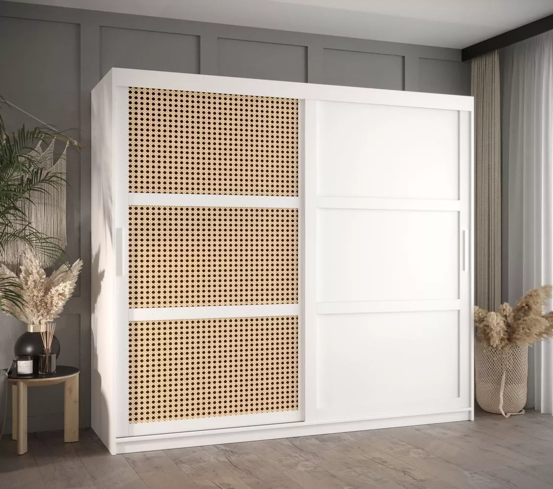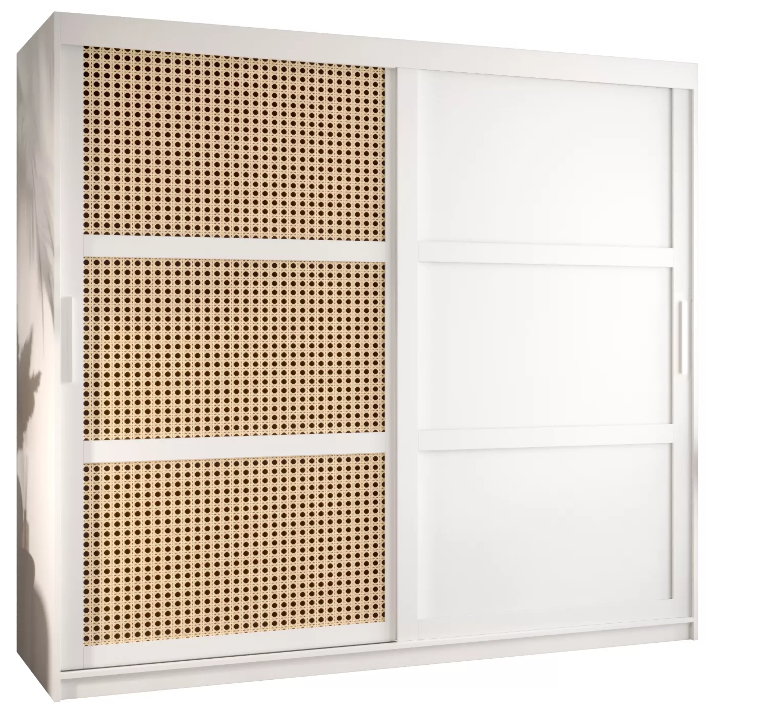Šatní skříň HALIMA 3 zaujme především stylově provedenými dveřmi. Vnitřek skříně je vybaven policovým systémem a 2 šatními tyčemi.