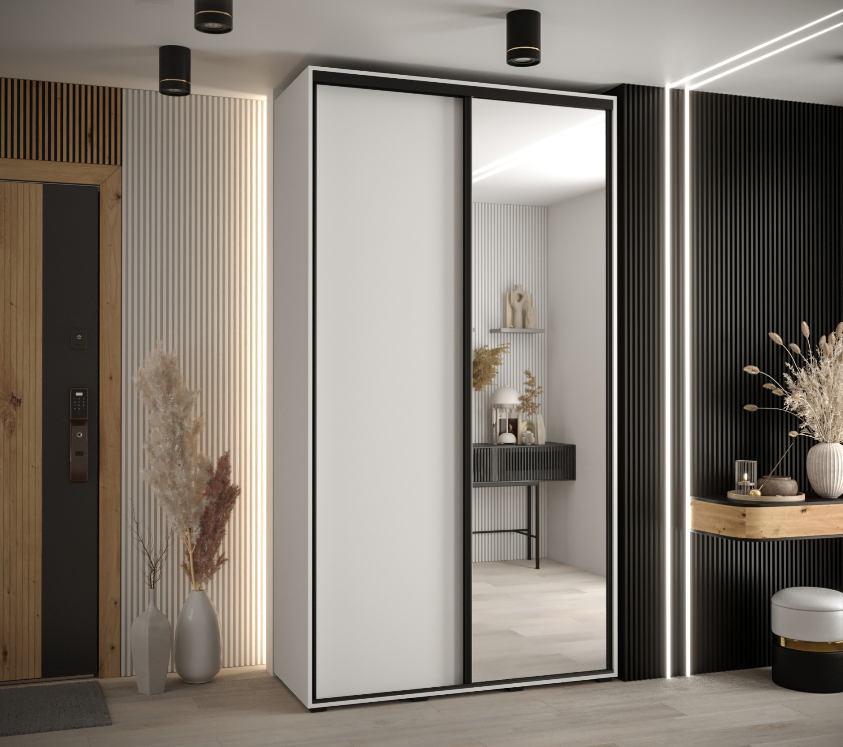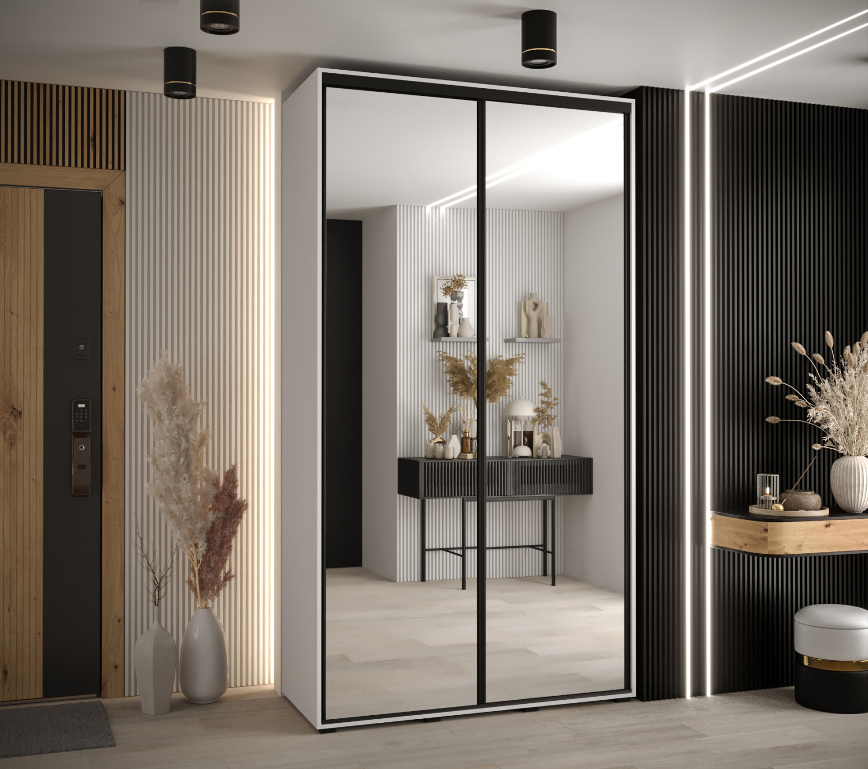Šatní skříň INDIRA 3 je vyrobena v moderním designu. Skříň je vybavena posuvnými dveřmi, které usnadňují manipulaci a šetří prostor v interiéru.