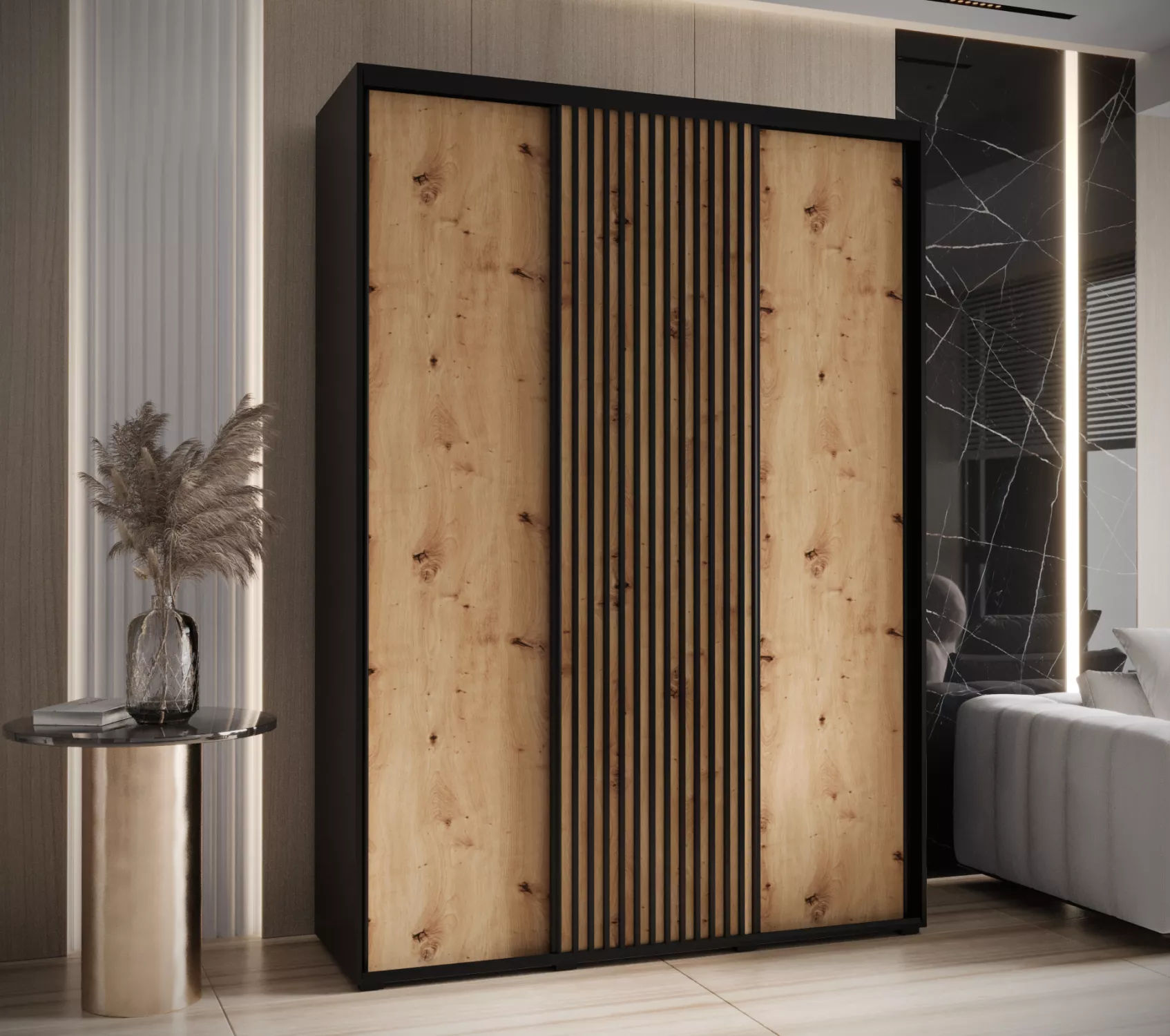 Šatní skříň BAYLIN 1 - 170/45 cm, černá / dub artisan / černá