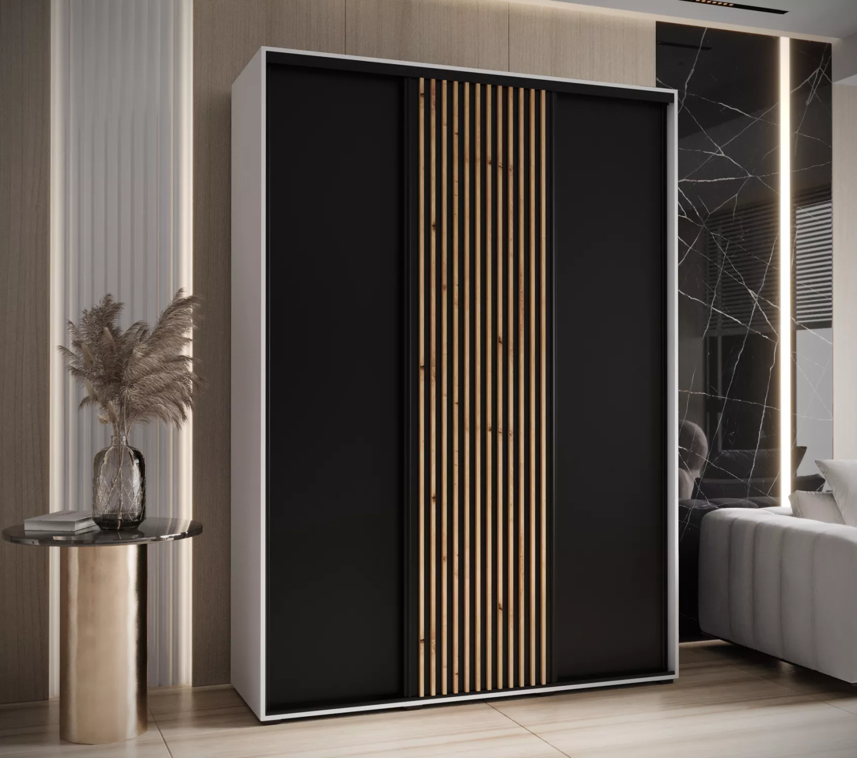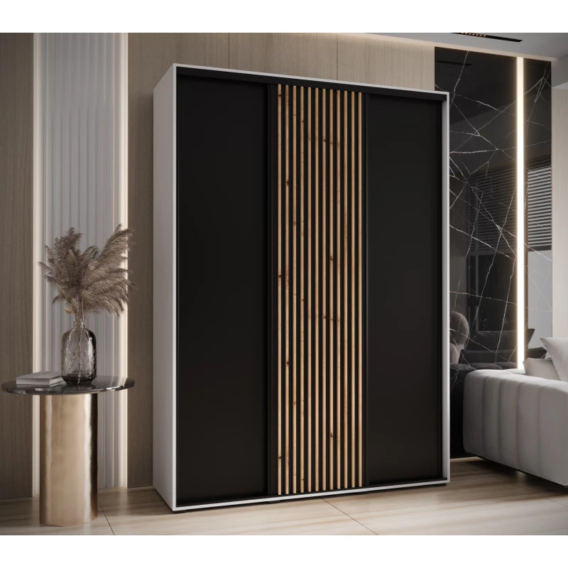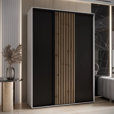 Šatní skříň FIDELIA 1 - 170/45 cm, bílá / černá / dub artisan