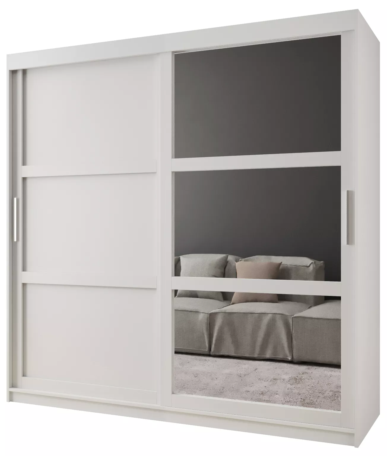 Šatní skříň KORRA 2 se hodí do všech moderních ložnic či šatníků. Skříň je vybavena posuvnými dveřmi, které usnadňují manipulaci a šetří prostor v interiéru.