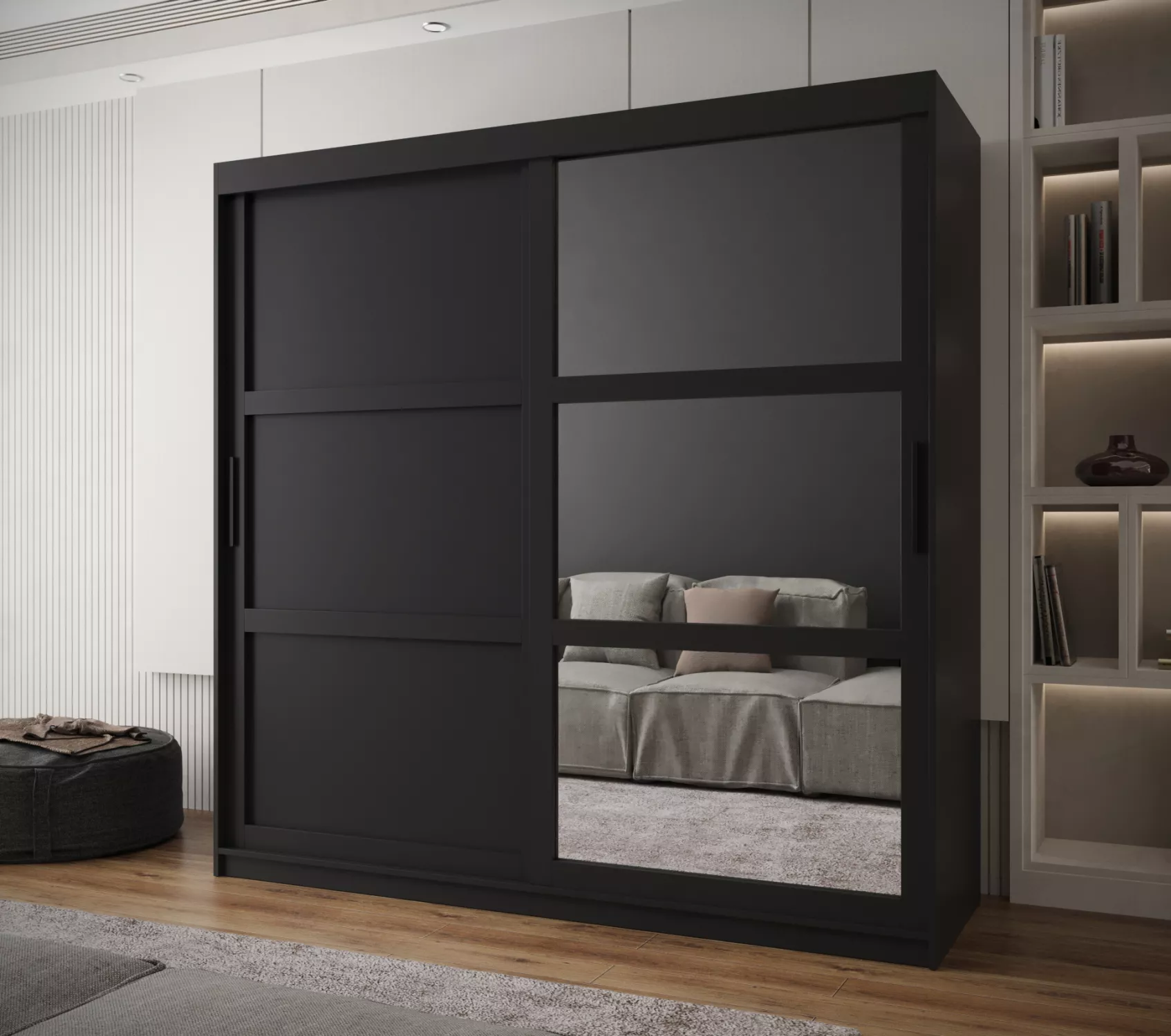 Šatní skříň KORRA 2 - 200 cm, černá / černá