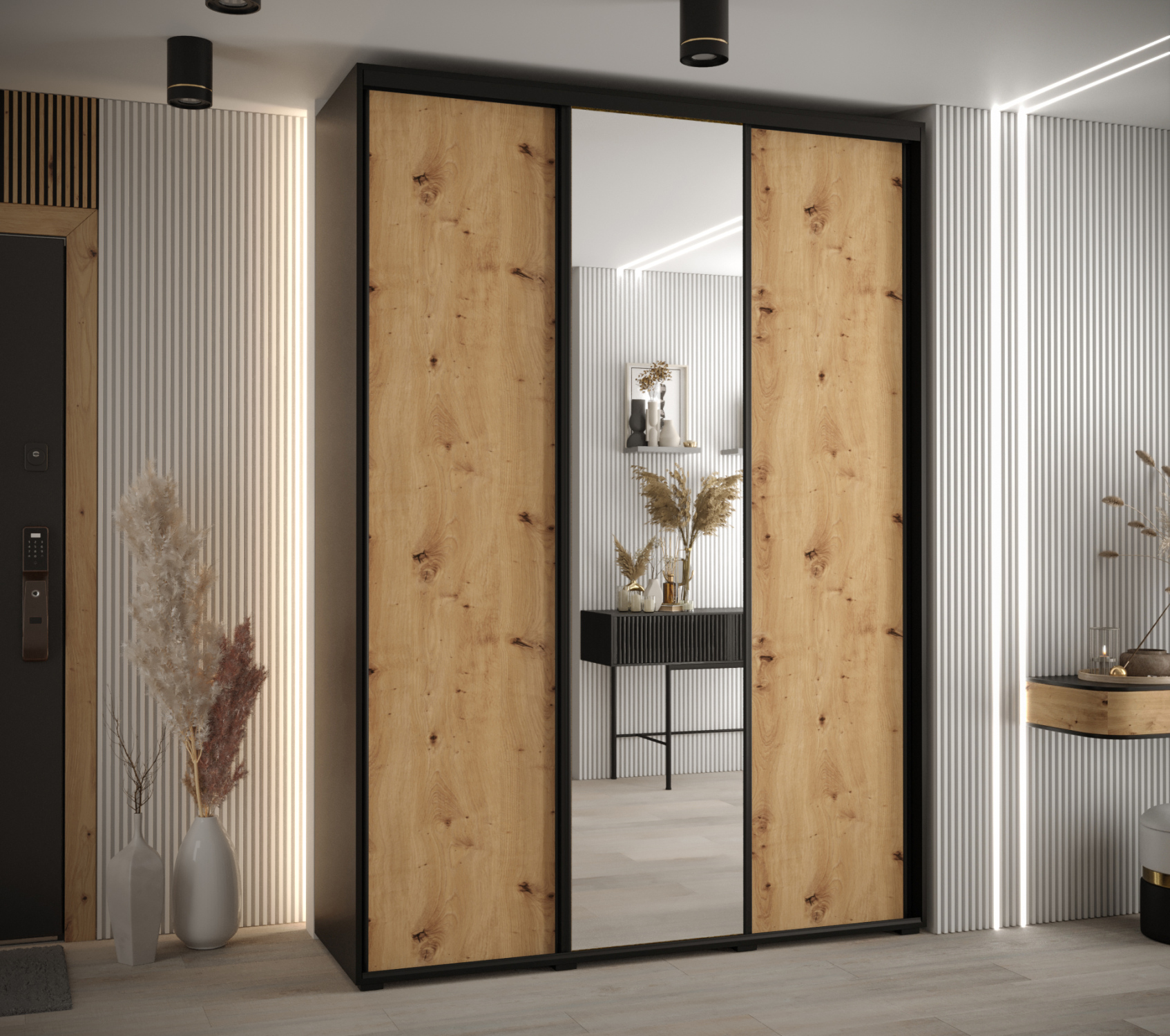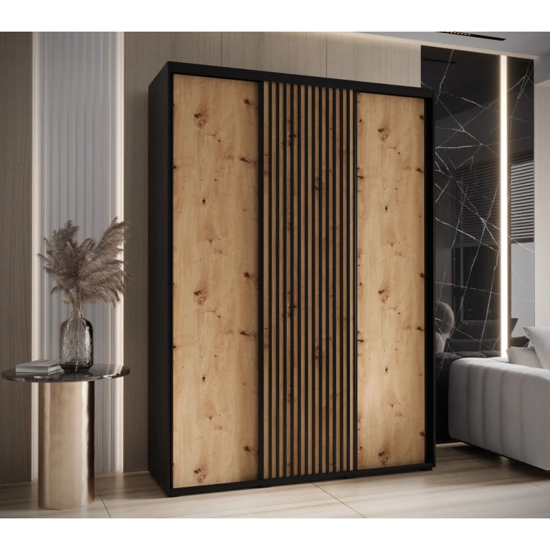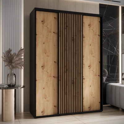 Šatní skříň FIDELIA 1 - 170/60 cm, černá / dub artisan / černá