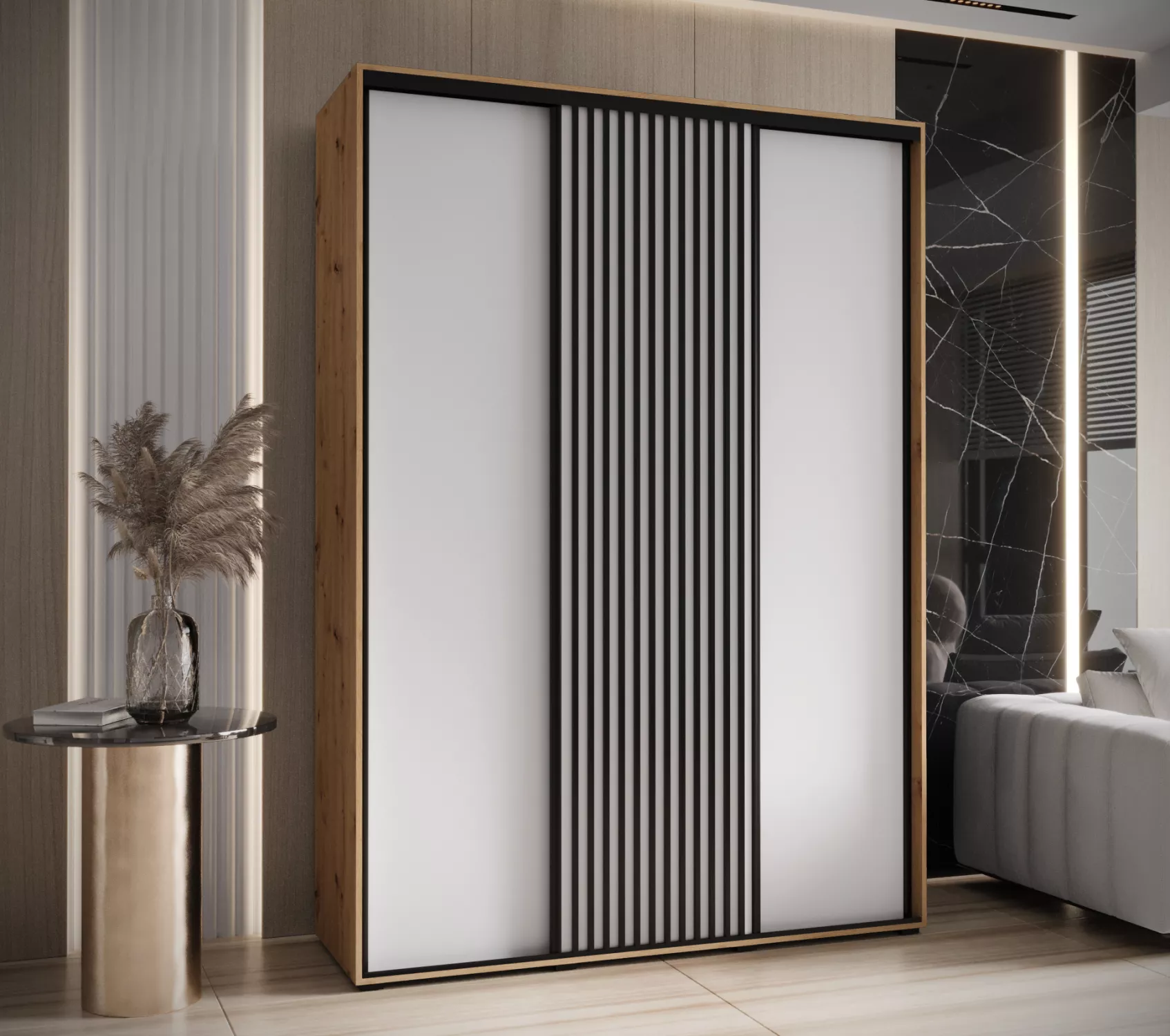 Šatní skříň FIDELIA 1 se hodí do všech moderních interiérů. Skříň je vybavena posuvnými dveřmi pro snadnější manipulaci a ušetření prostoru při otevírání.