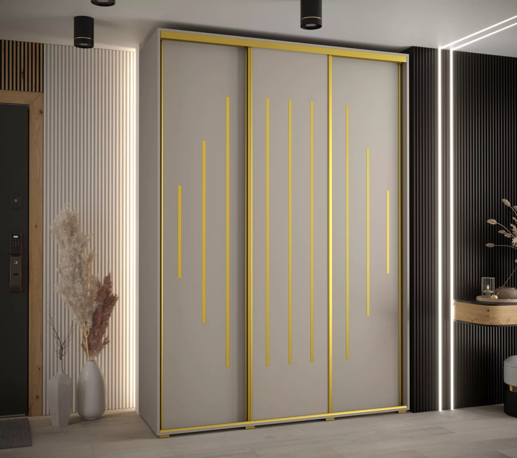 Šatní skříň INDIRA 12 - 180/45 cm, kašmír / zlatá