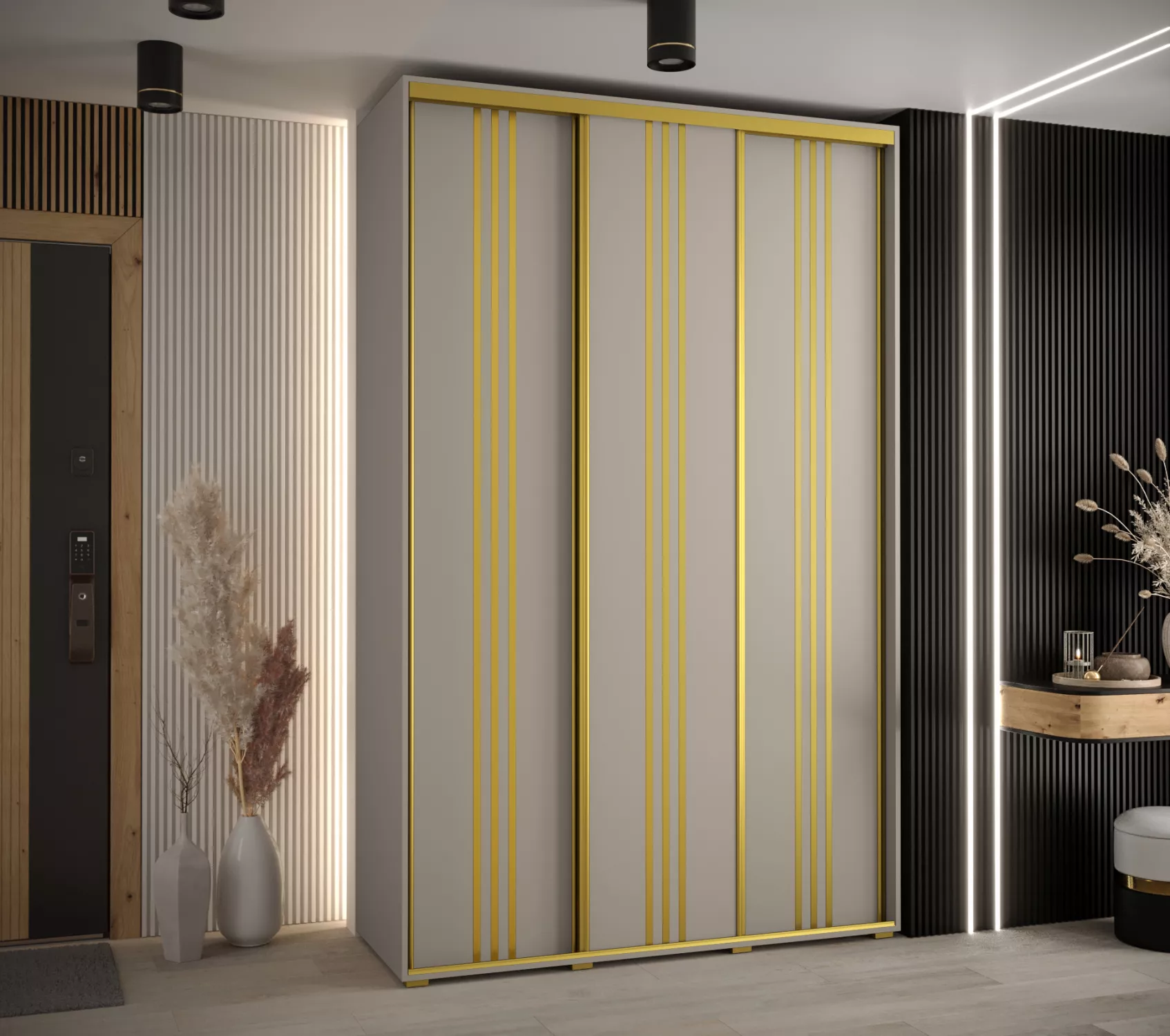 Šatní skříň INDIRA 6 - 160/60 cm, kašmír / zlatá