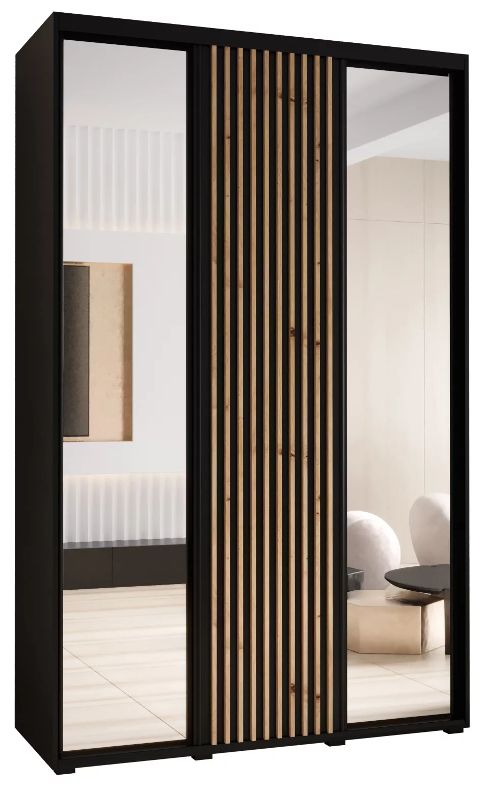 Šatní skříň BAYLIN 2 - 160/60 cm, černá / černá / dub artisan