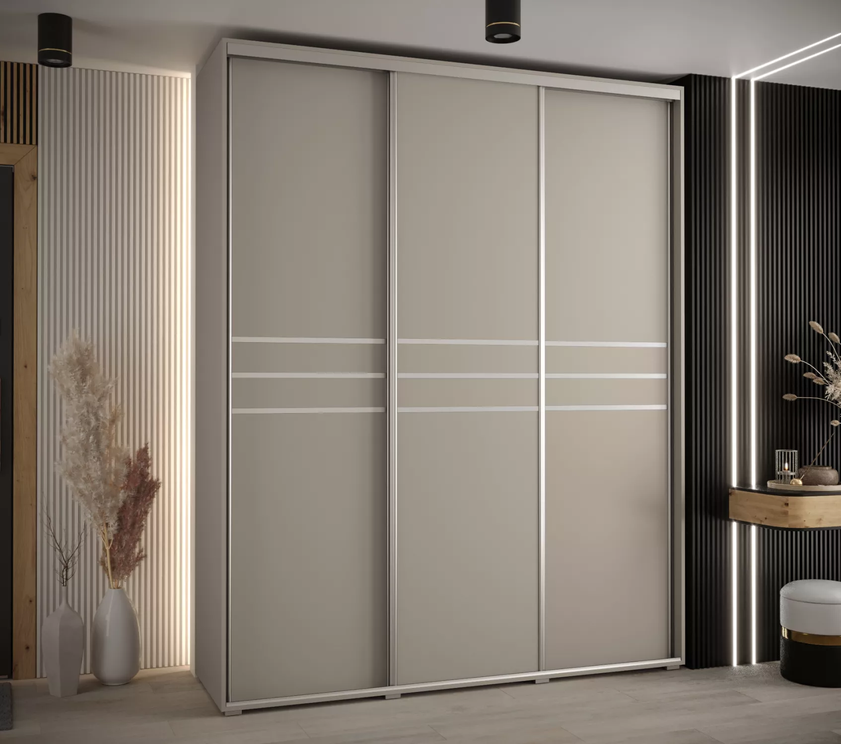 Šatní skříň INDIRA 10 je vyrobena v moderním designu. Skříň je vybavena posuvnými dveřmi, které usnadňují manipulaci a šetří prostor v interiéru.