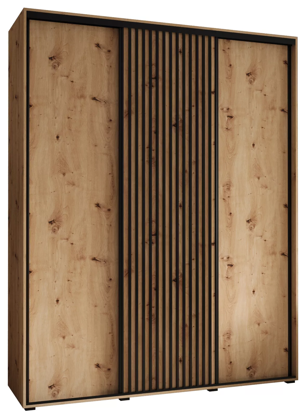 Šatní skříň FIDELIA 1 - 190/45 cm, dub artisan / dub artisan / černá