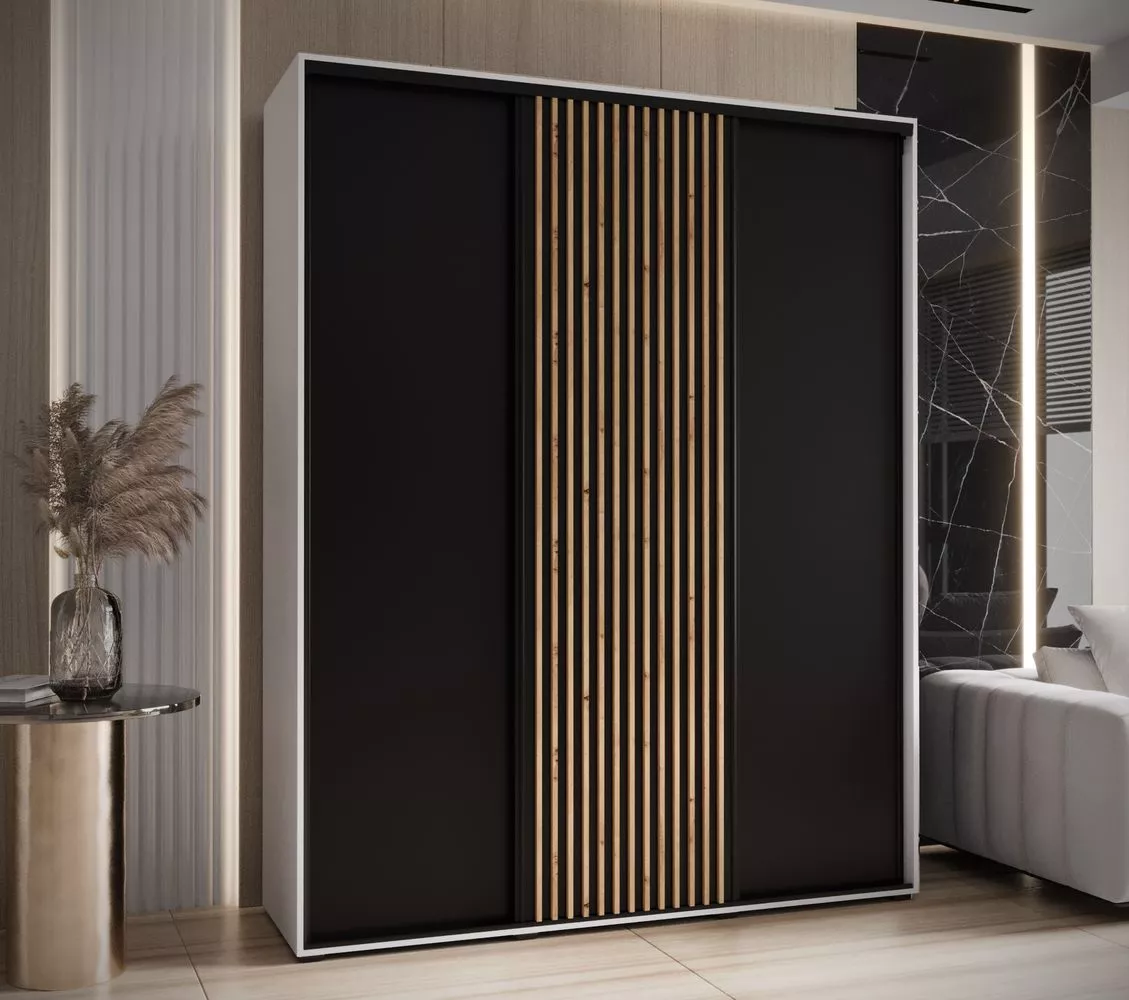 Šatní skříň BAYLIN 1 - 200/45 cm, bílá / černá / dub artisan