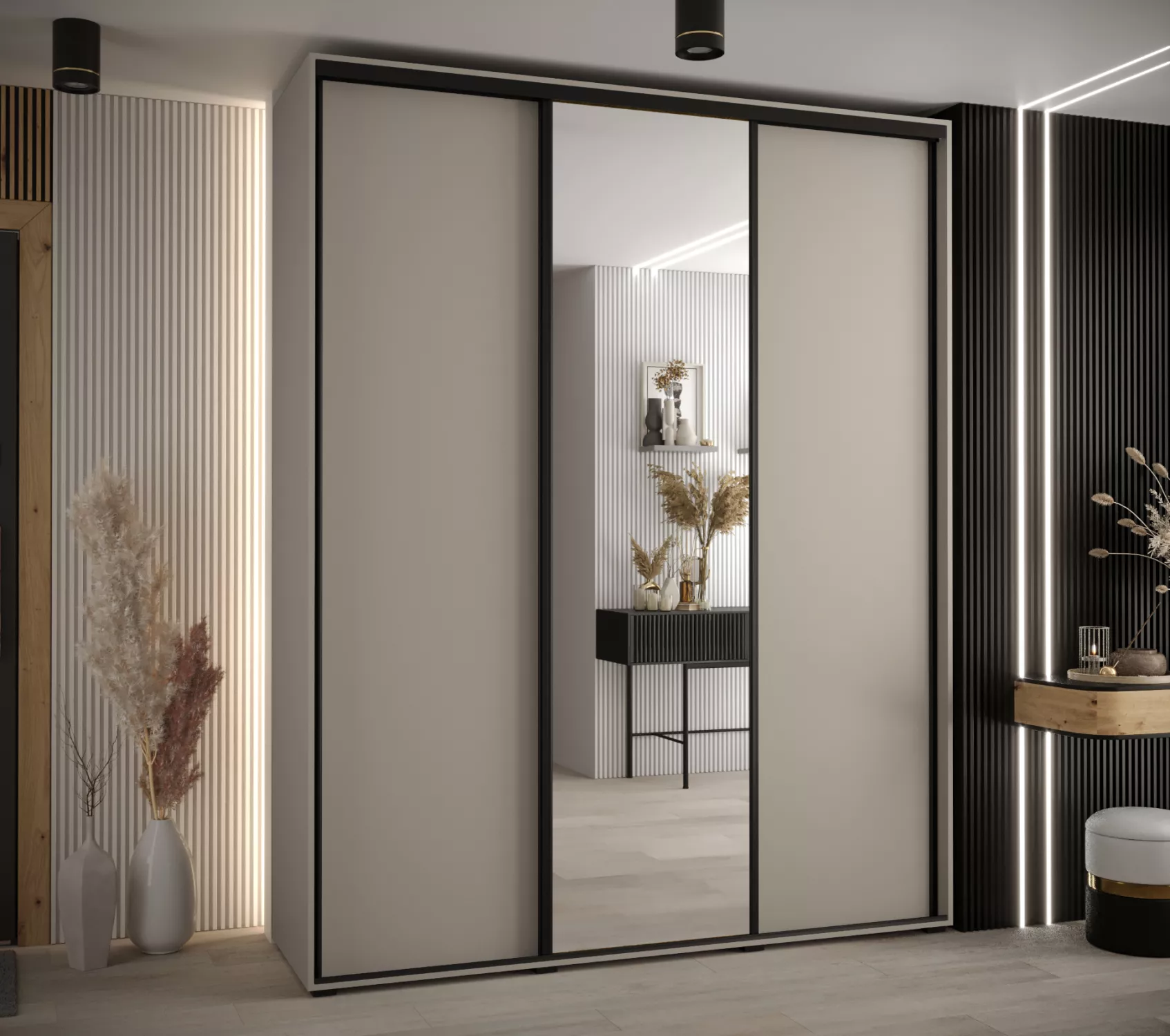 Šatní skříň INDIRA 3 je vyrobena v moderním designu. Skříň je vybavena posuvnými dveřmi, které usnadňují manipulaci a šetří prostor v interiéru.