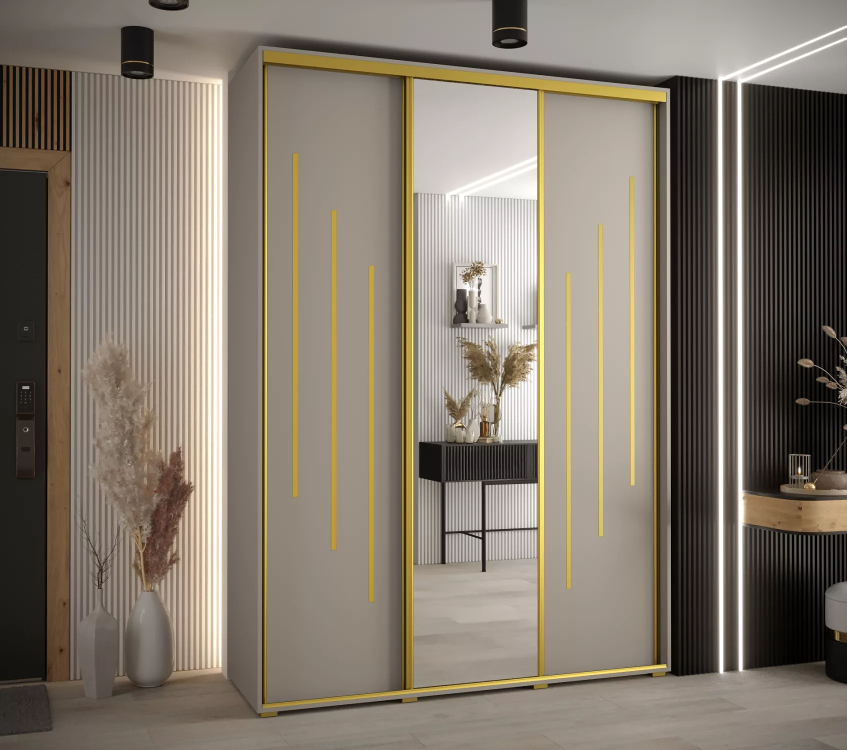Šatní skříň INDIRA 9 - 180/60 cm, kašmír / zlatá