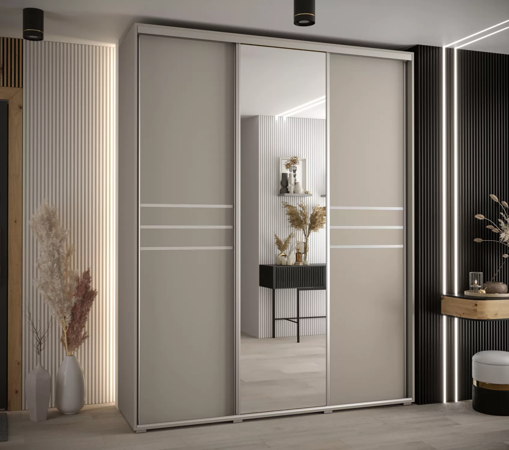 Šatní skříň INDIRA 11 je vyrobena v moderním designu. Skříň je vybavena posuvnými dveřmi, které usnadňují manipulaci a šetří prostor v interiéru.