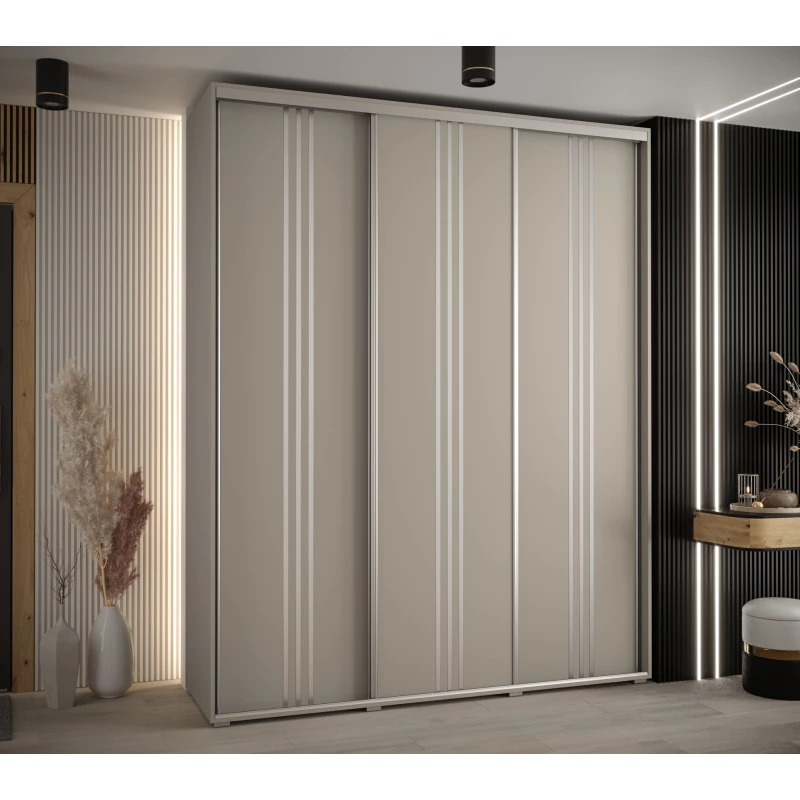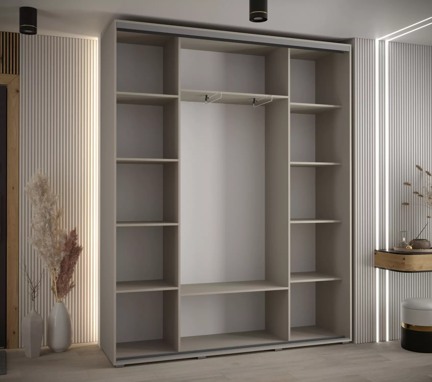 Šatní skříň INDIRA 6 je vyrobena v moderním designu. Skříň je vybavena posuvnými dveřmi, které usnadňují manipulaci a šetří prostor v interiéru.