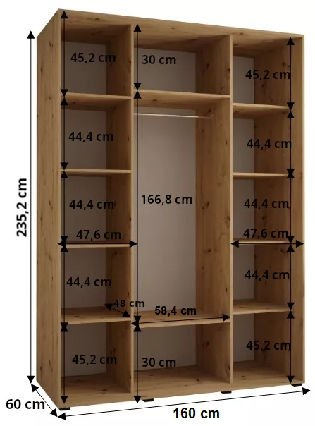 Šatní skříň FIDELIA 2 - 160/60 cm, dub artisan / bílá / černá