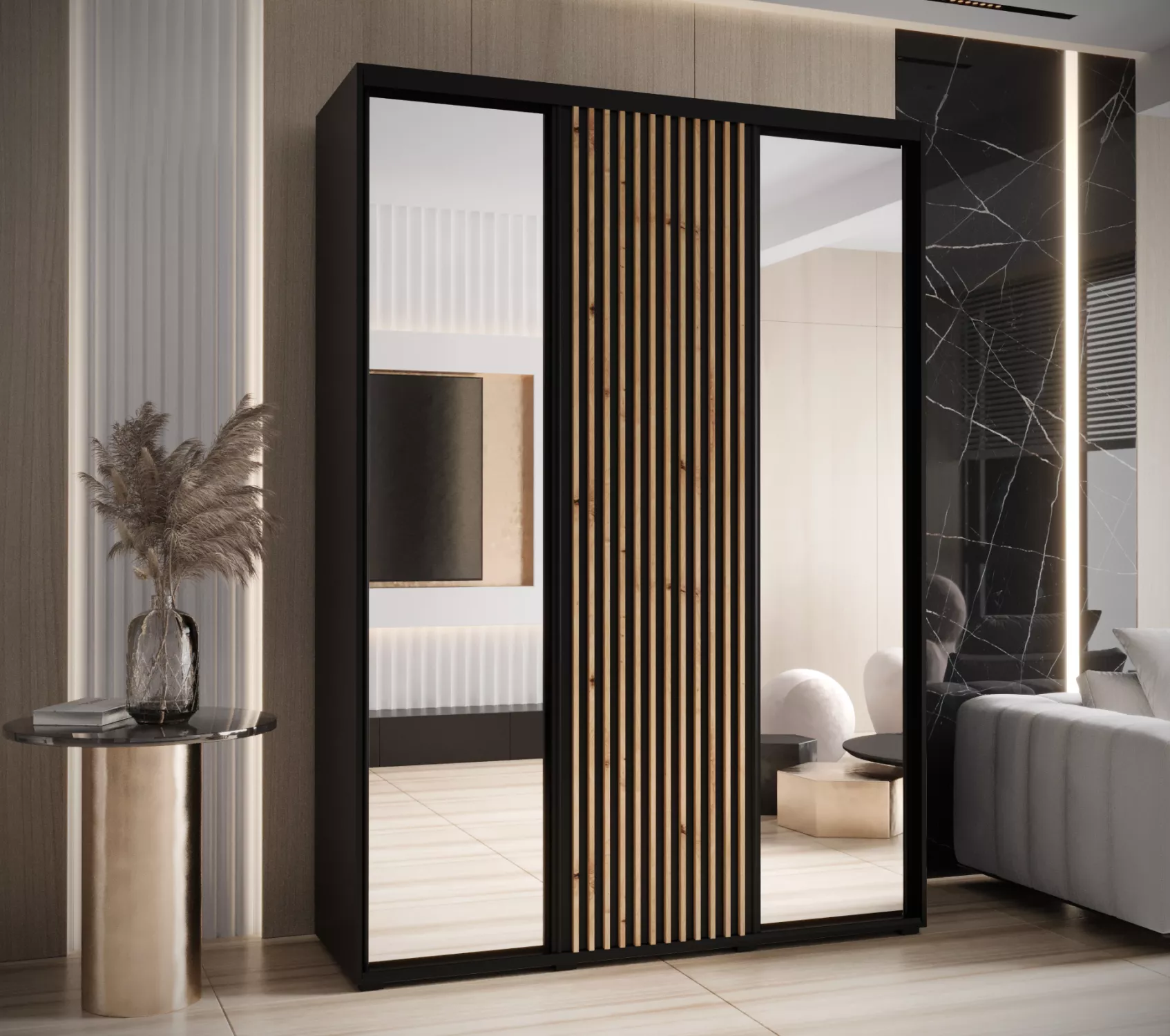 Šatní skříň BAYLIN 2 - 170/45 cm, černá / černá / dub artisan