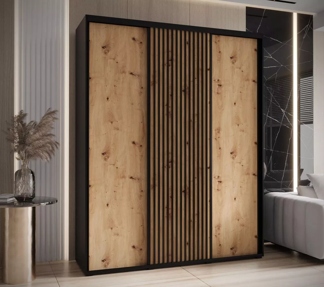Šatní skříň FIDELIA 1 - 200/45 cm, černá / dub artisan / černá