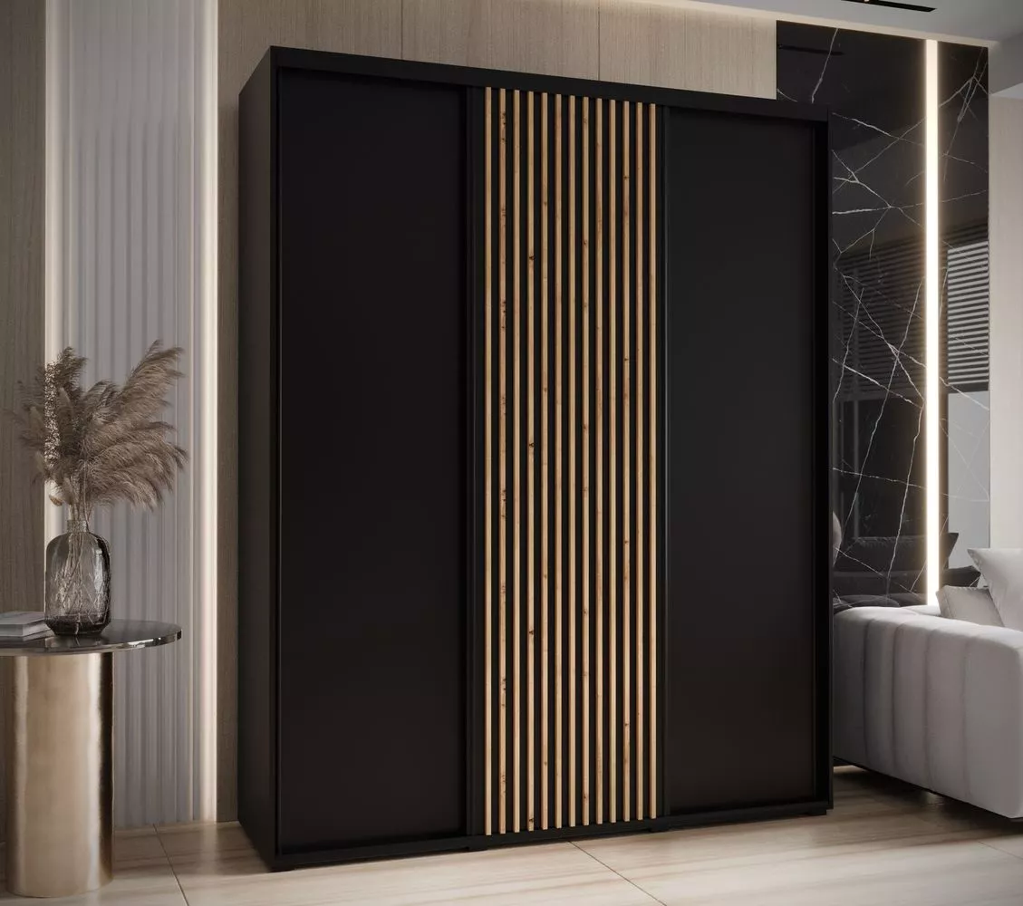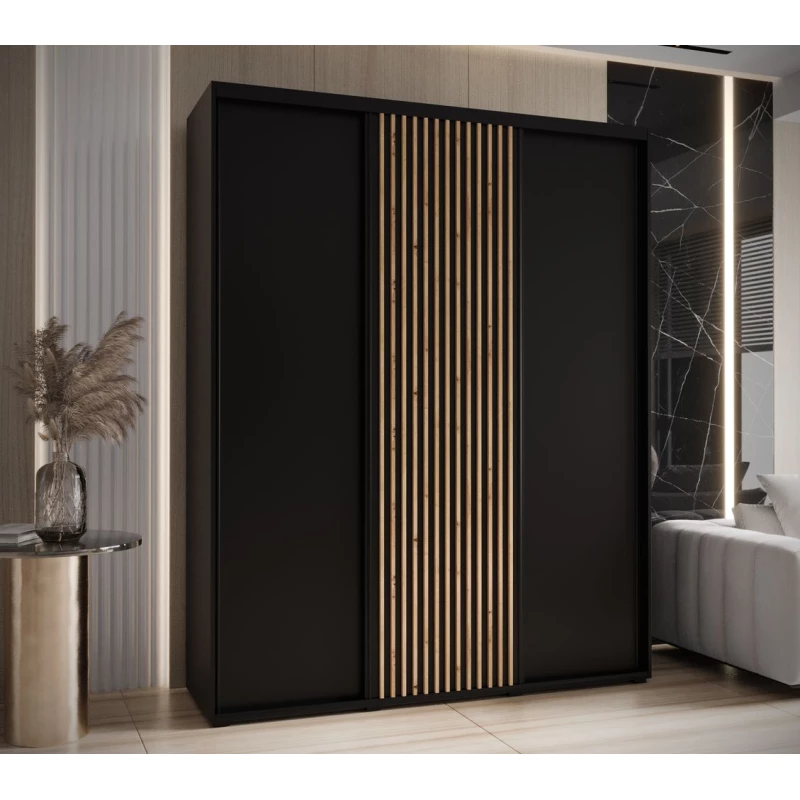 Šatní skříň FIDELIA 1 - 200/60 cm, černá / černá / dub artisan