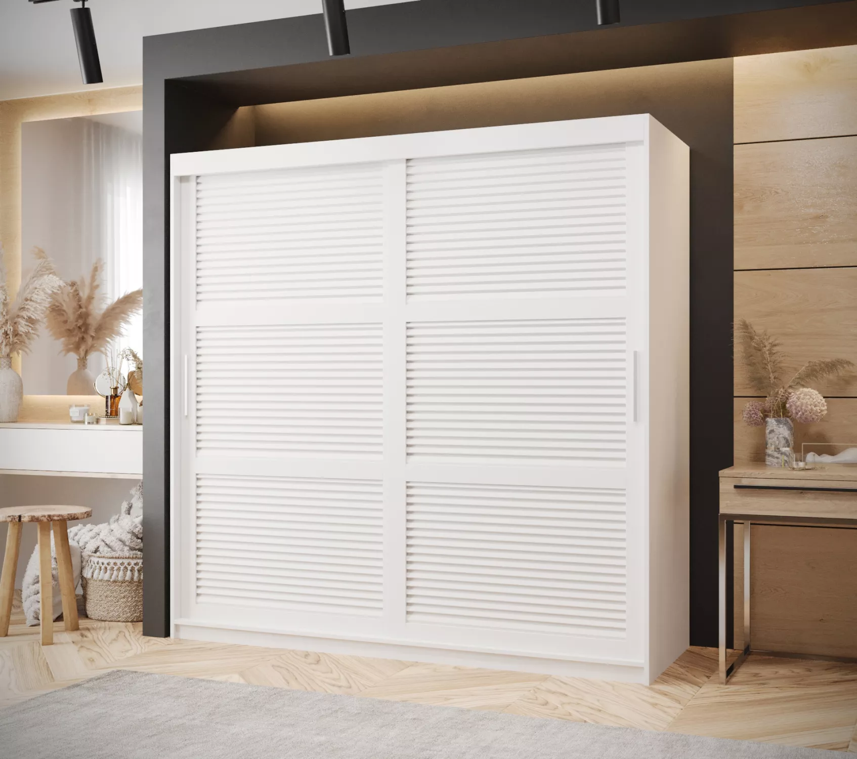 Šatní skříň MATILDA 1 zaujme především stylovými dvířky. Vnitřek skříně je vybaven policovým systémem a 2 šatními tyčemi.