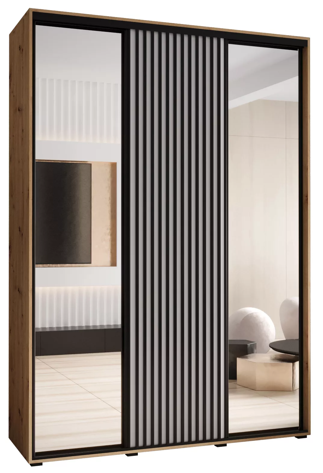 Šatní skříň FIDELIA 2 - 170/45 cm, dub artisan / bílá / černá