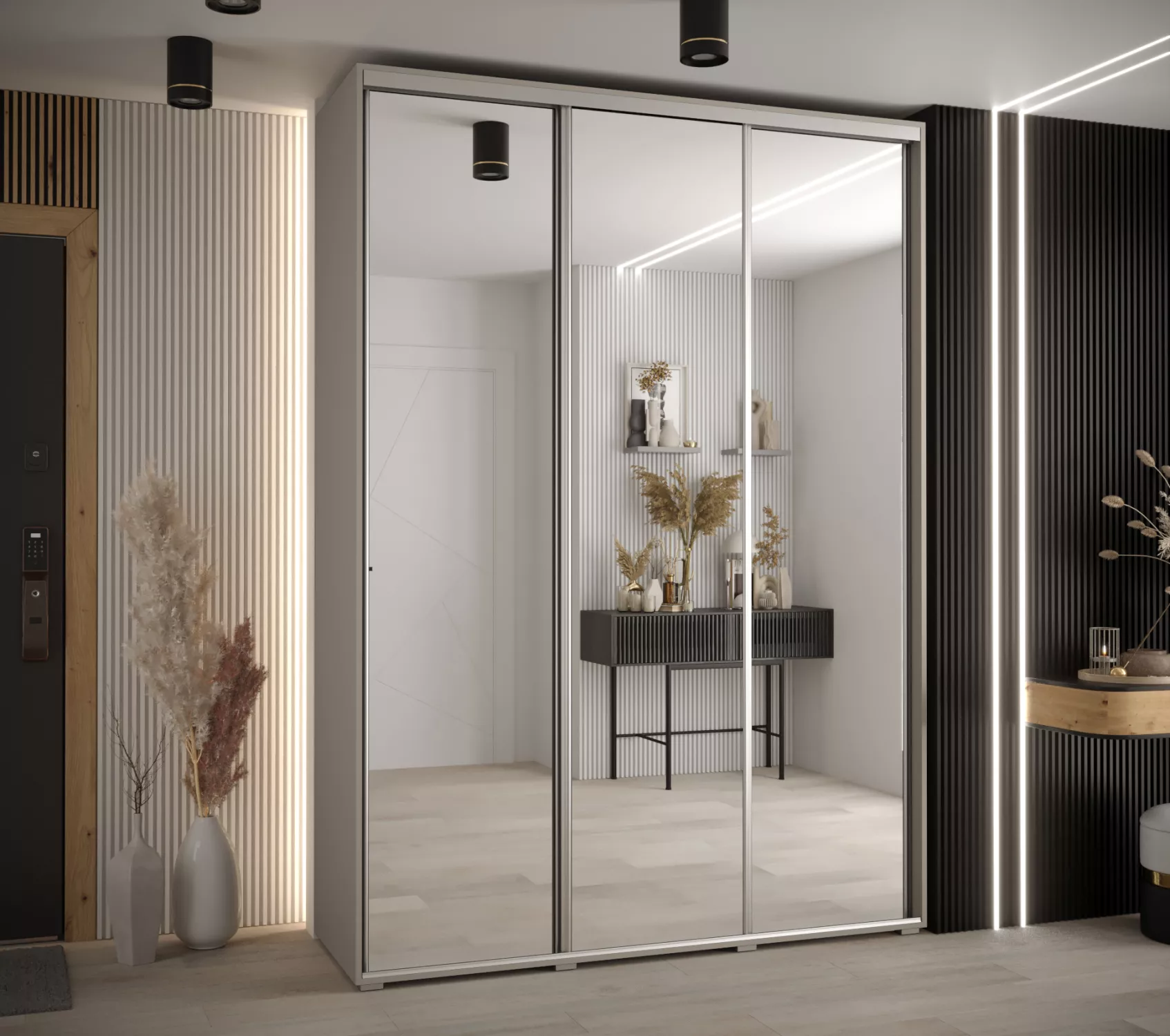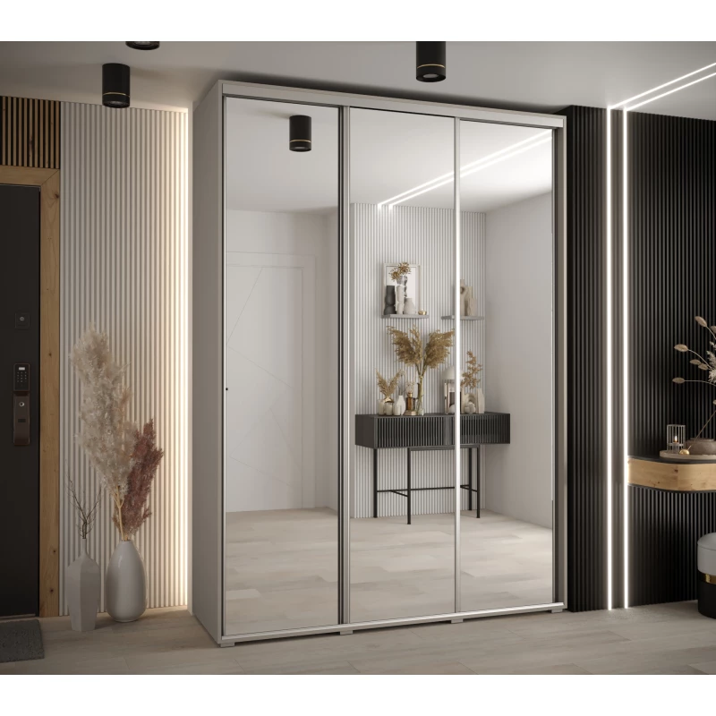 Šatní skříň INDIRA 2 je vyrobena v moderním designu. Skříň je vybavena posuvnými dveřmi, které usnadňují manipulaci a šetří prostor v interiéru.