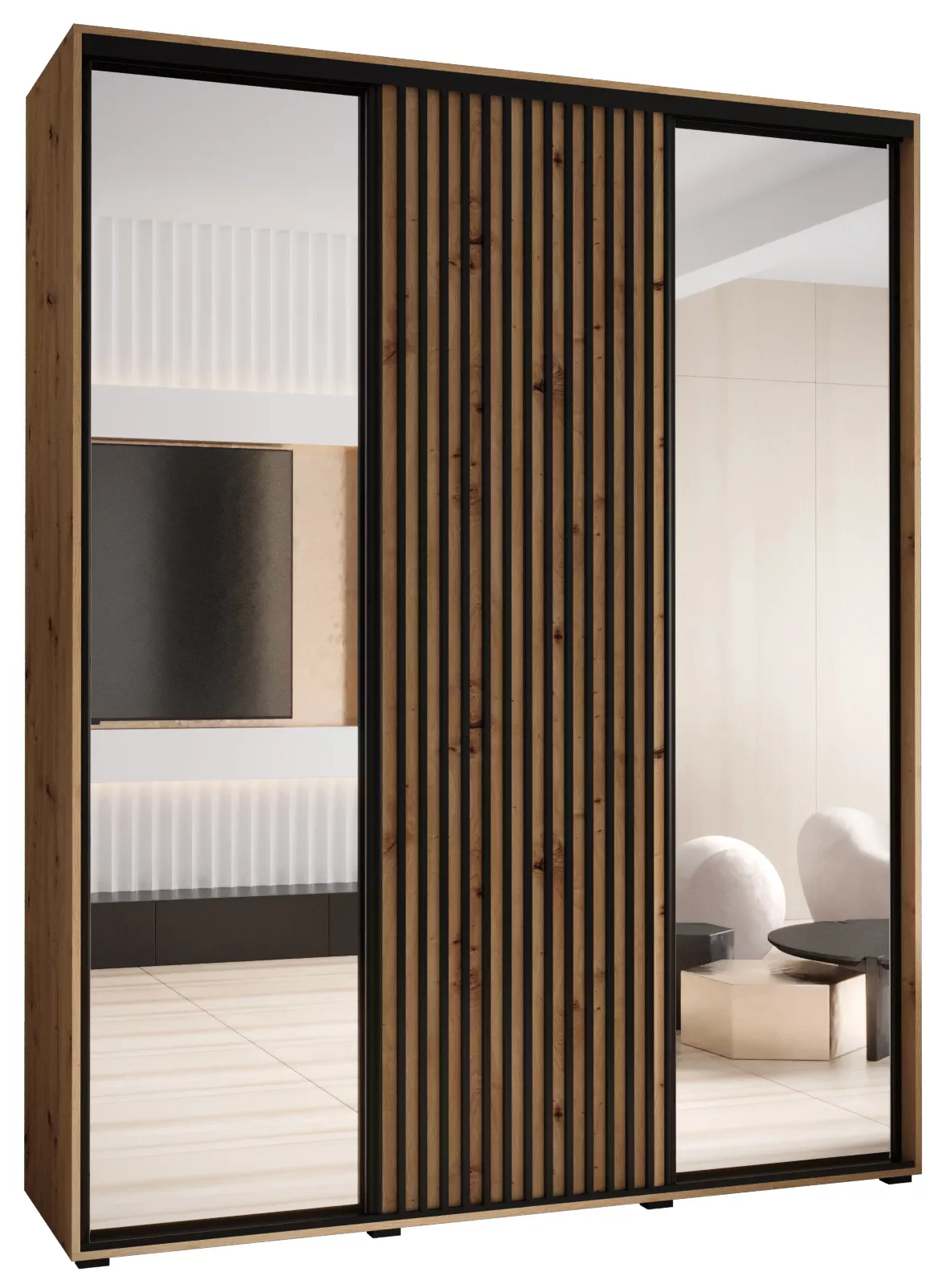Šatní skříň BAYLIN 2 - 190/45 cm, dub artisan / dub artisan / černá