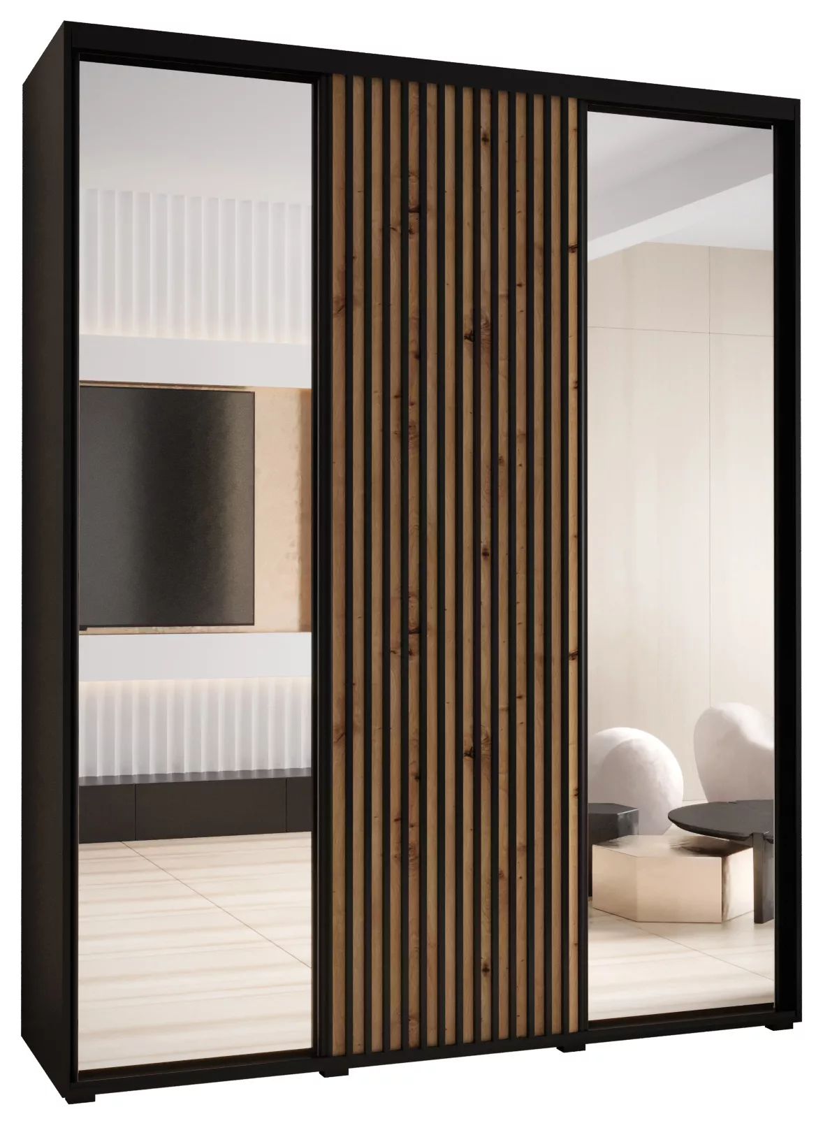 Šatní skříň BAYLIN 2 - 190/60 cm, černá / dub artisan / černá