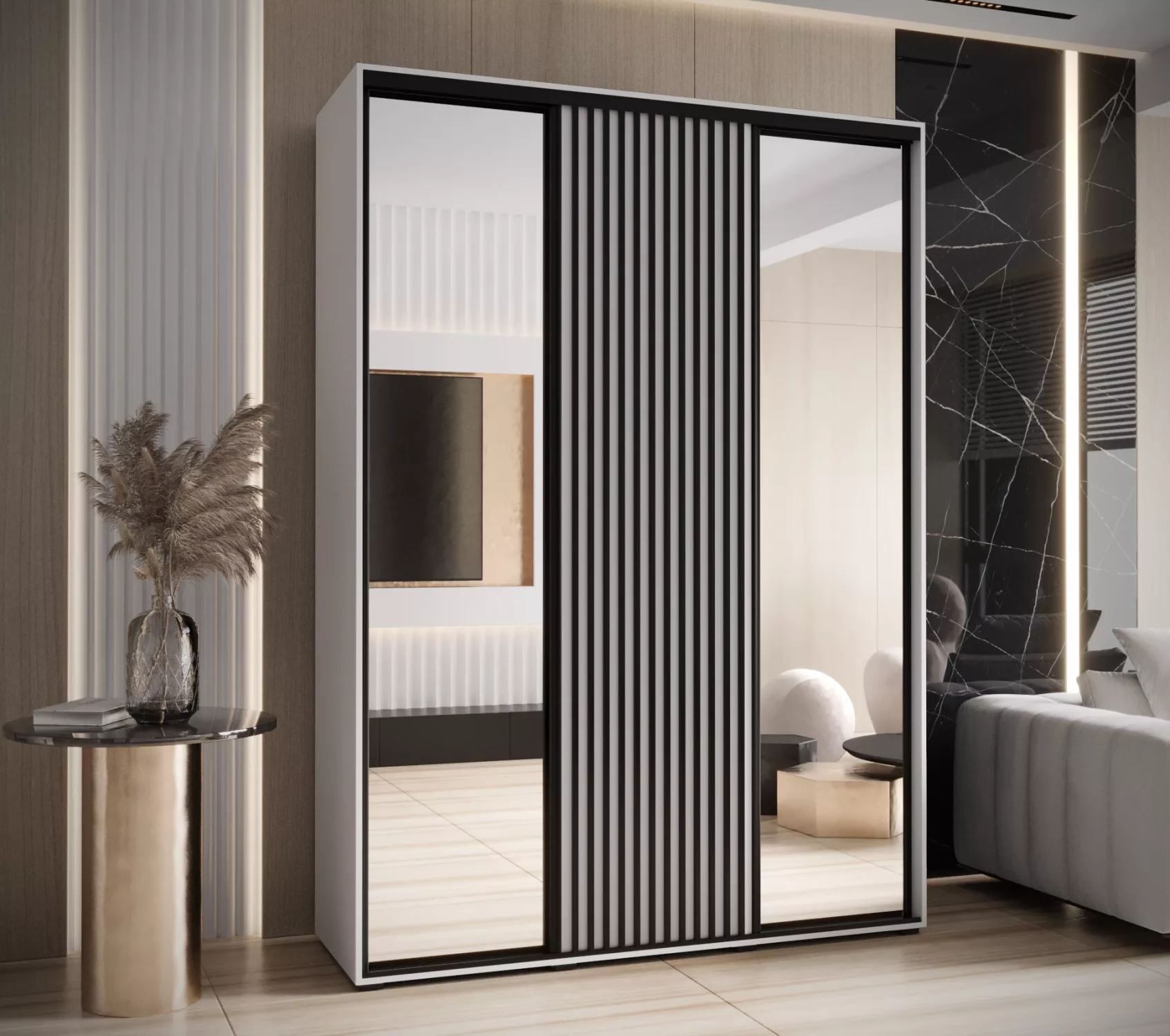 Šatní skříň FIDELIA 2 se hodí do všech moderních interiérů. Skříň je vybavena posuvnými dveřmi pro snadnější manipulaci a ušetření prostoru při otevírání.