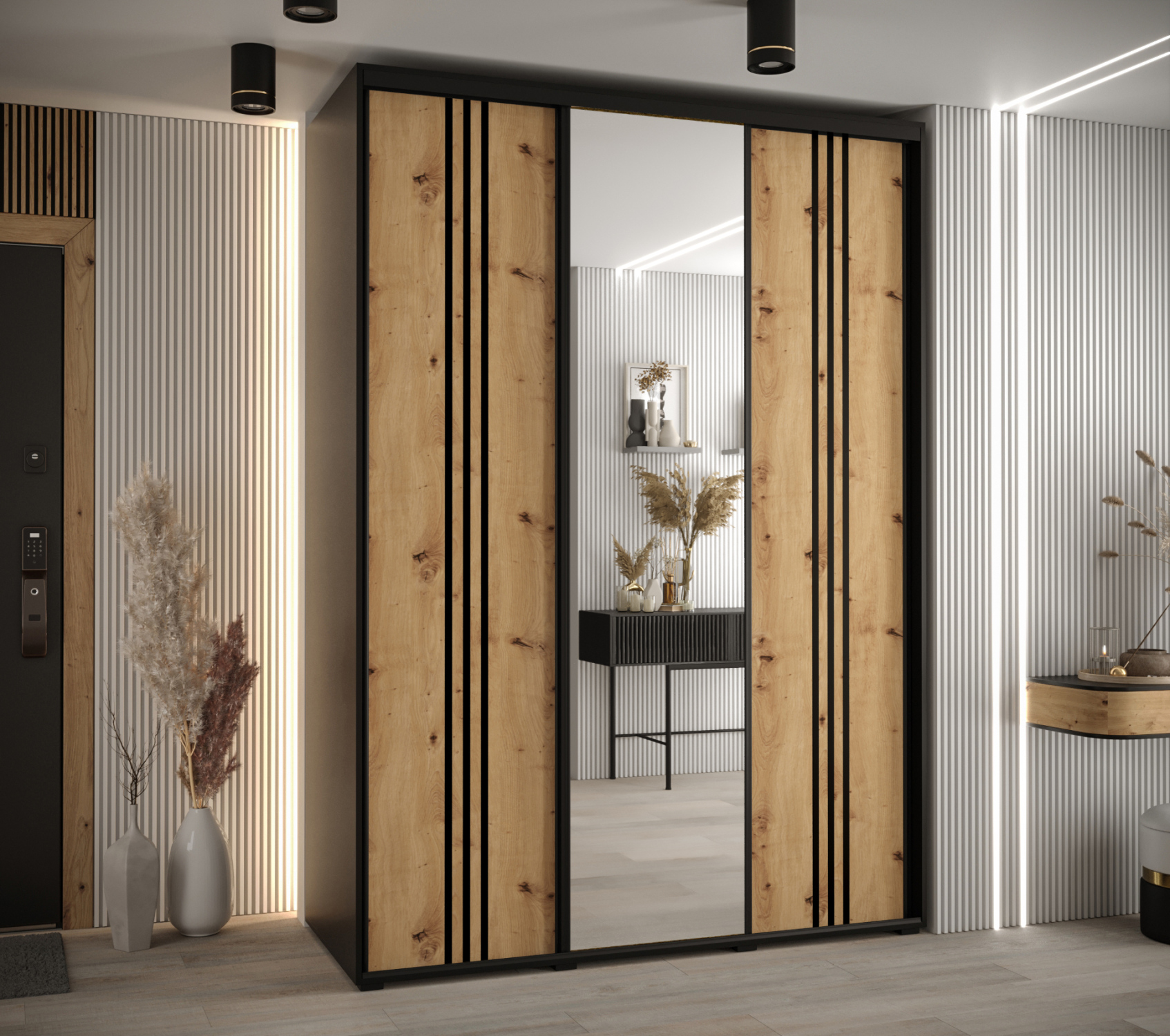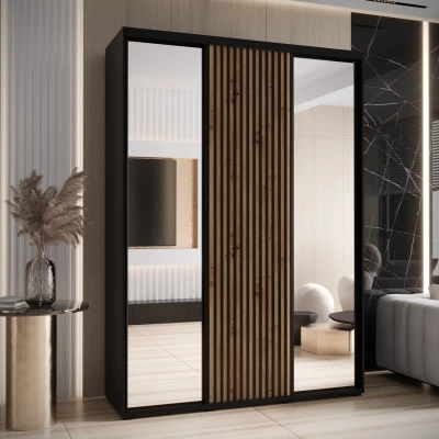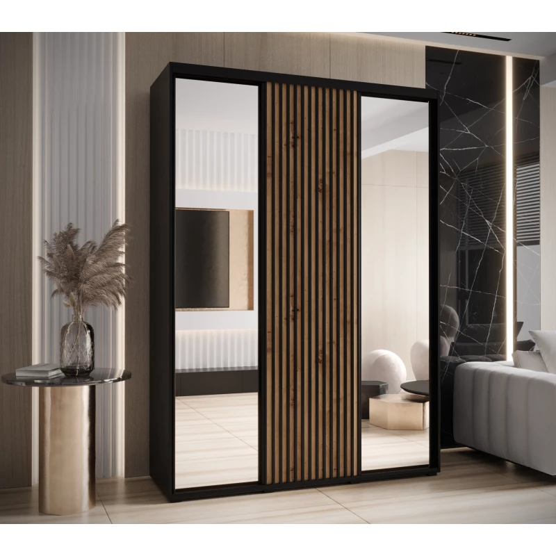 Šatní skříň FIDELIA 2 - 180/45 cm, černá / dub artisan / černá