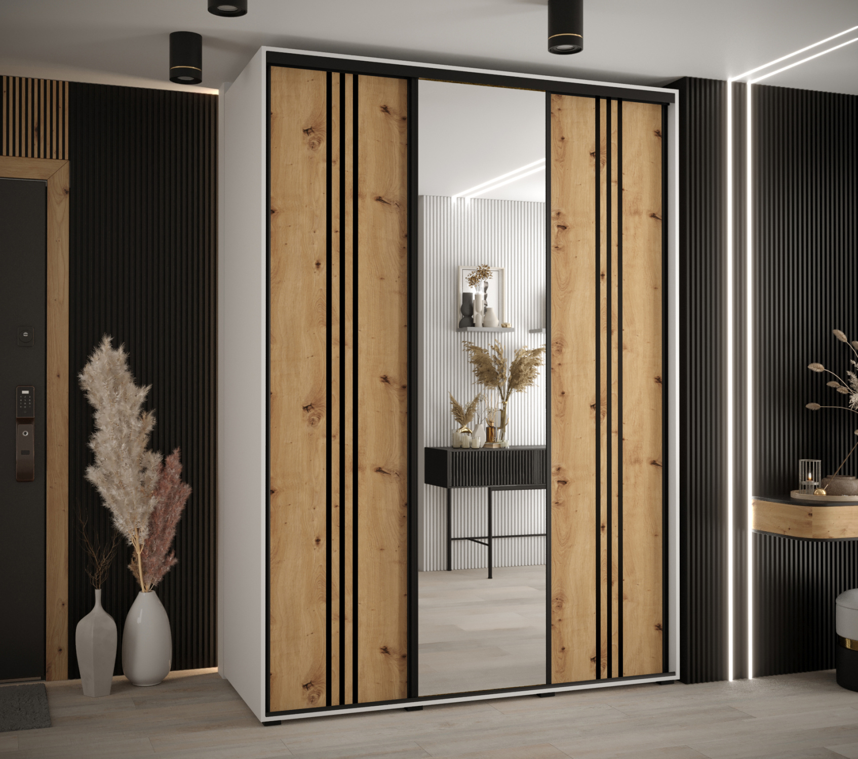 Šatní skříň FIDELIA 2 - 180/60 cm, dub artisan / bílá / černá