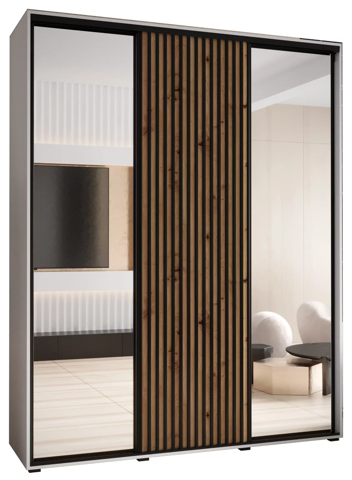 Šatní skříň FIDELIA 2 - 200/45 cm, bílá / dub artisan / černá