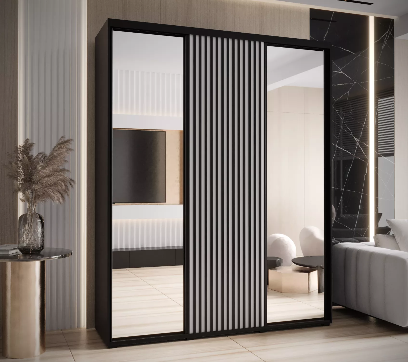 Šatní skříň FIDELIA 2 se hodí do všech moderních interiérů. Skříň je vybavena posuvnými dveřmi pro snadnější manipulaci a ušetření prostoru při otevírání.