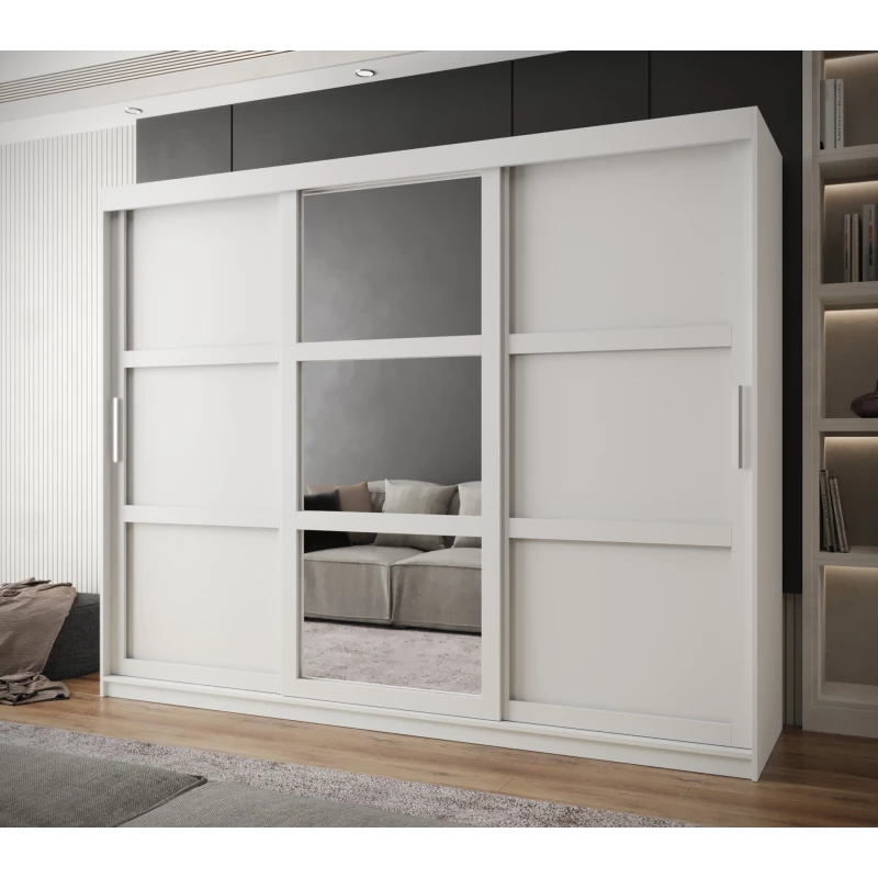 Šatní skříň KORRA 2 - 250 cm, bílá / stříbrná