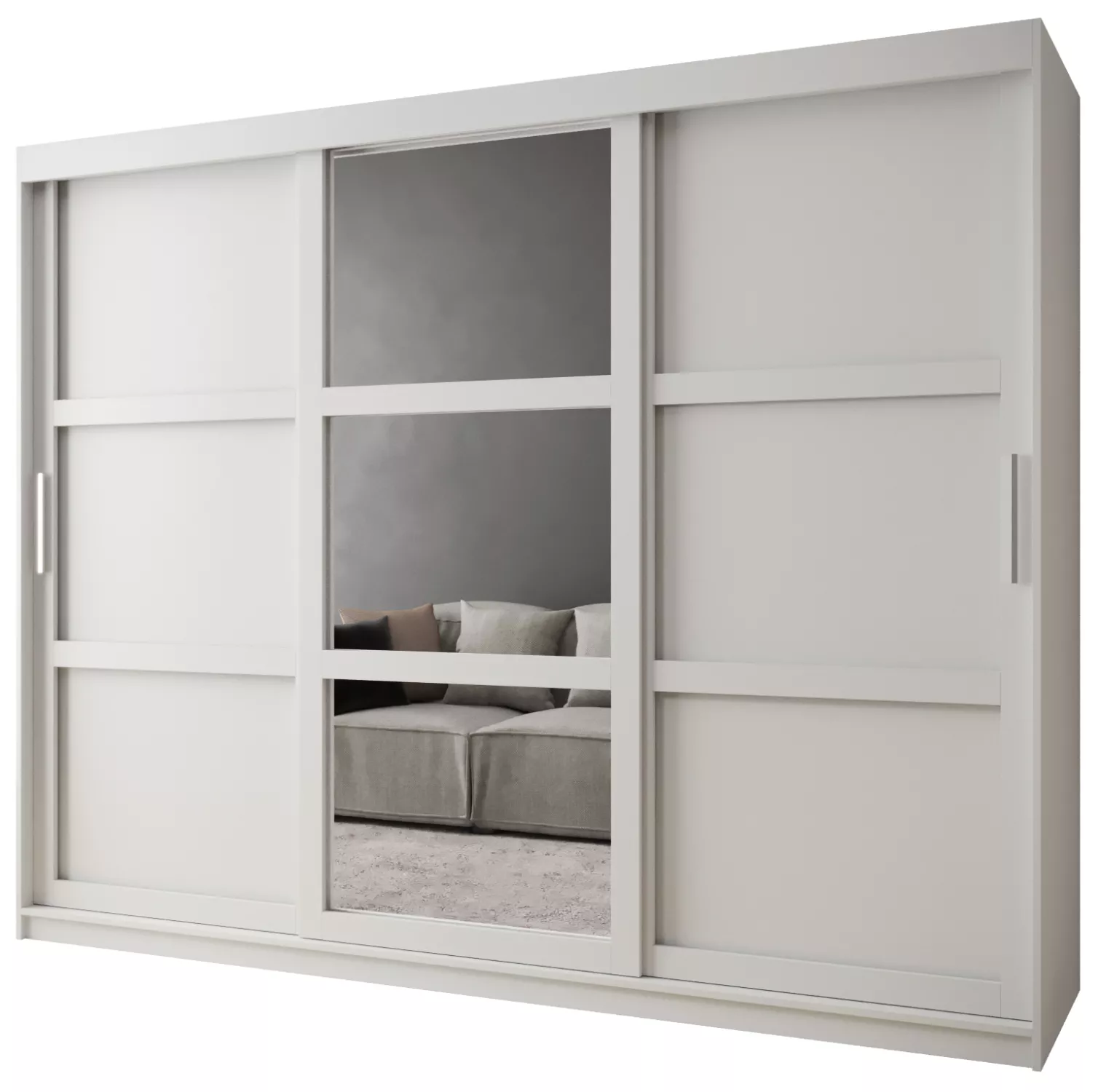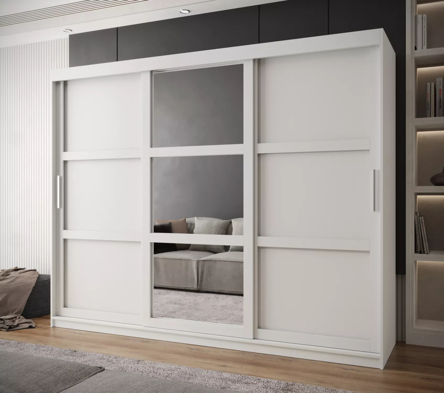 Šatní skříň KORRA 2 se hodí do všech moderních ložnic či šatníků. Skříň je vybavena posuvnými dveřmi, které usnadňují manipulaci a šetří prostor v interiéru.