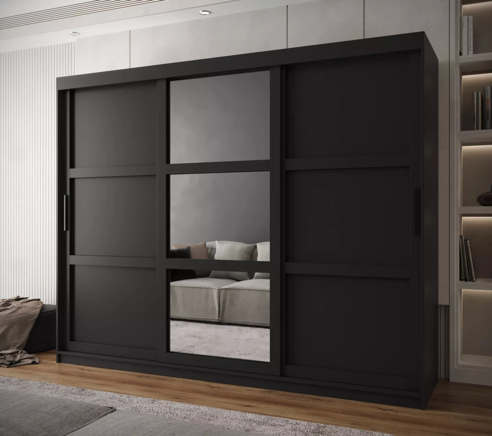 Šatní skříň KORRA 2 - 250 cm, černá / černá