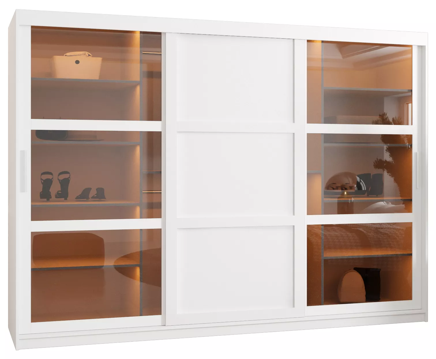 Šatní skříň KATIE 2 - 250 cm, bílá / stříbrná
