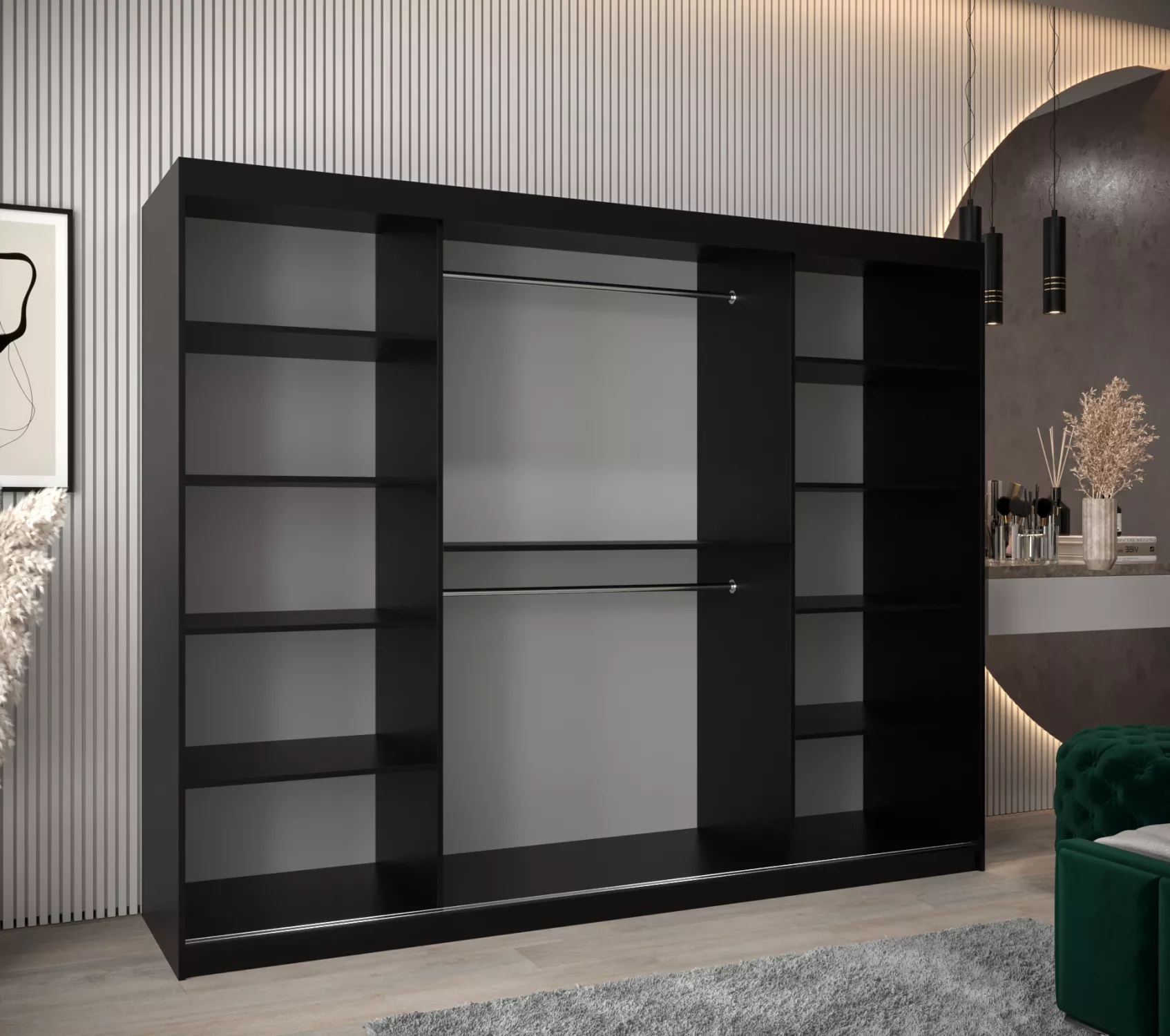 Šatní skříň KATIE 2 - 250 cm, černá / černá